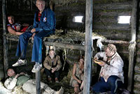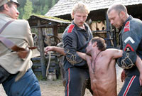 Белогвардейские офицеры, руководит которыми подозрительный "старичок" Кузьмич (Алексей Горбунов), подчиняются тому самому Прохору (Евгений Миронов). Прохор раньше был мастером по металлу (упражнялся с катаной), а теперь преподает жителям офицерской деревни правила охоты на людей: пойманные индивидуумы, в число которых входят Кирилл с Ольгой, скидываются на вертолете в тайге, после чего Прохор, его маруха Синильга (Виктория Исакова) и белогвардейская тусовка отправляются по их следу, чтобы перестрелять всех быстрее, чем сомики нерестятся.