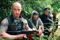 Честно говоря, приятно наблюдать за тем, как российская кинопромышленность все больше и больше набирает обороты. Конечно, это происходит не без пробуксовки, не без откровенных выкидышей вроде "Зеркальных войн...", однако тенденция вполне правильная - наши уже явно научились снимать блокбастеры. "Охота на пиранью" - настоящий блокбастер, который задуман как блокбастер, снят как блокбастер и выглядит блокбастером. Эдакий российский "Крепкий орешек" пополам с "Рэмбо" и с довесками из примерно пары десятков других боевиков.