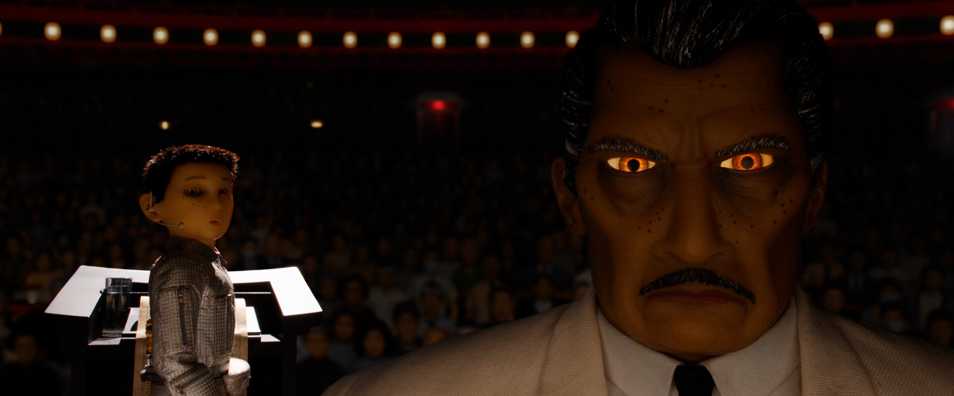 Люди в картине больше похожи на рисунки - посмотрите на какое-то кривоватое и недоделанное лицо мальчика Атари, картонно-каменные физиономии Кобаяши и его мажордома, лубочную физиономию студентки-американки Трейси (Грета Гервиг), возглавившей "Ла Резистанс".