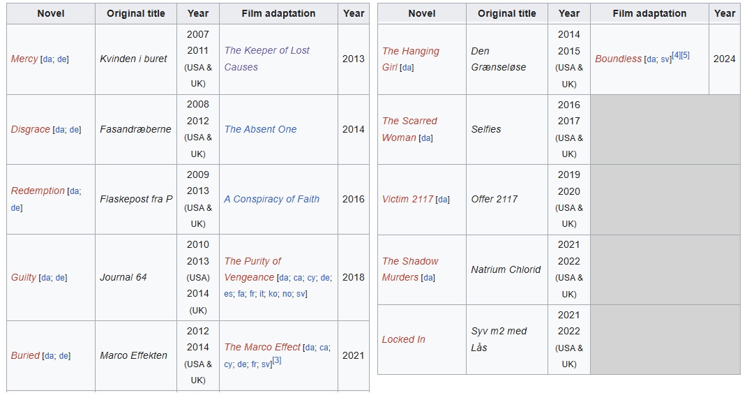 По состоянию на 2025 год их уже 11. Последнюю еще не читал, но десятая книга по сути цикл закрыла. Кроме того, у Адлер-Олсена рак в неизлечимой стадии, так что больше одиннадцати вроде бы уже не будет.