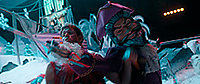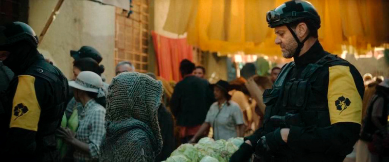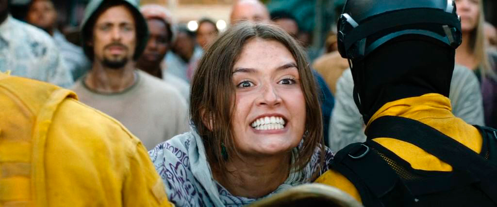 Противостоящая Пацану Джун27 в исполнении Джессики Рот - очень хороша: отличница боевой и политической подготовки, при этом у нее есть забавная мулька - она носит мотоциклетный шлем с экраном, на котором периодически выводятся всякие предупреждающие надписи и ругательства.