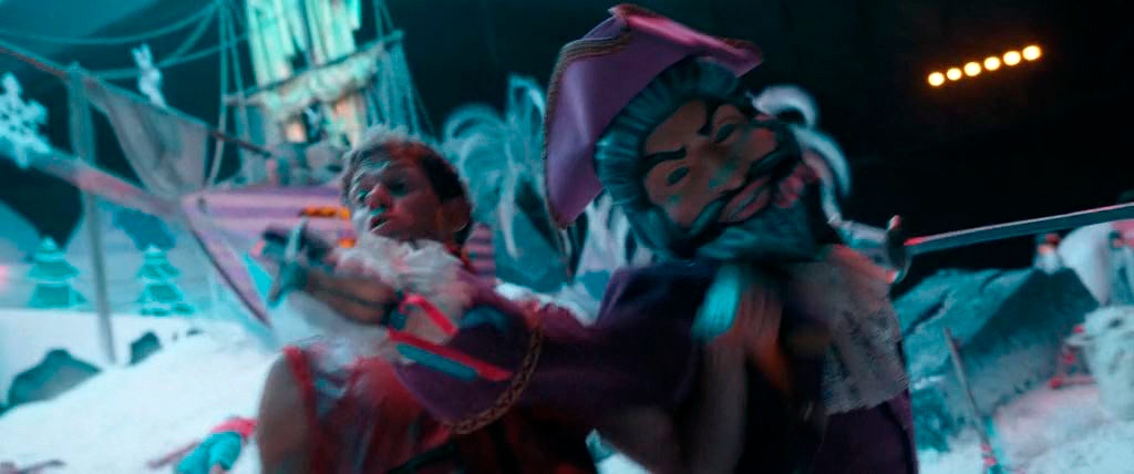 Но оно на самом деле так и задумано, и здесь все эти сюжетные повороты - нарочито заштампованные, равно как и некий сюжетный твист, который на самом деле мало что меняет. Потому что это одновременно и пародия на целую серию картин подобного рода и лихая мешанина из видеоигр, комиксов, предельно кровавого рубилова, слэпстика и черного юмора.