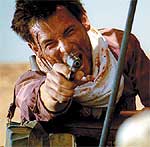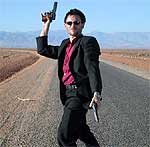 А вот огня и воды в этом путешествии будет предостаточно. Точнее, воды будет очень мало, ведь трейлер идет по пустыне, но зато огня - сколько хочешь. Ясно как божий день, что добром эта поездка не кончится, потому что слишком разные люди сидят в одной кабине. Отморозок Симон, считающий себя суперкрутым, на самом деле всего лишь истеричный ублюдок, готовый палить во все, что движется и даже не движется. Симон считает, что истерика у человека, держащего в руках пару пистолетов, испугает кого угодно, однако Харви так не думает. Харви считает, что можно обойтись без истерик. Он и обходится. Харви не нервничает понапрасну. Раз двое мужчин не сошлись во взглядах на музыку, думает Харви, значит один мужчина должен умереть. Тем более, что он очень истеричен, а это не к лицу мужчине...