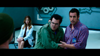 Адама Сэндлера действительно ограничили в тупых шутках и запретили ему хохмить по поводу сисек и членов, поэтому он тут самый унылый и только один раз хохмит на тему нечищеных зубов.