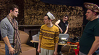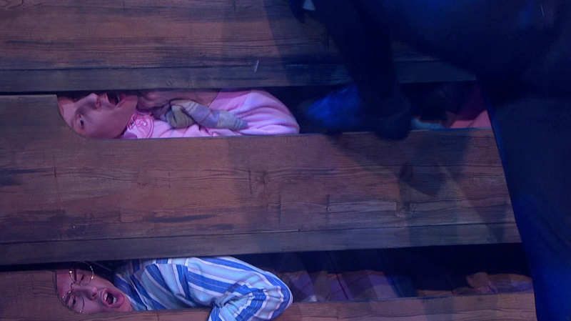 Очень важную роль в постановке играет главный работник сцены (Крис Лиск). Ему так или иначе периодически приходится появляться на сцене, чтобы решить очередную проблему, а в какой-то момент ему и вовсе пришлось замещать одного из главных актеров.