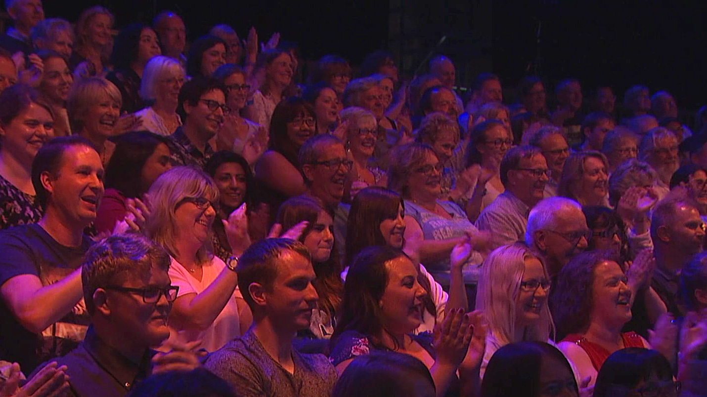 Что собой представляет данная картина? Это тоже типа как театральная постановка членов драматического сообщества Политехнического университета города Корнли, которая разыгрывается в зрительном зале перед живой аудиторией, и мы видим и слышим реакцию зрителей.
