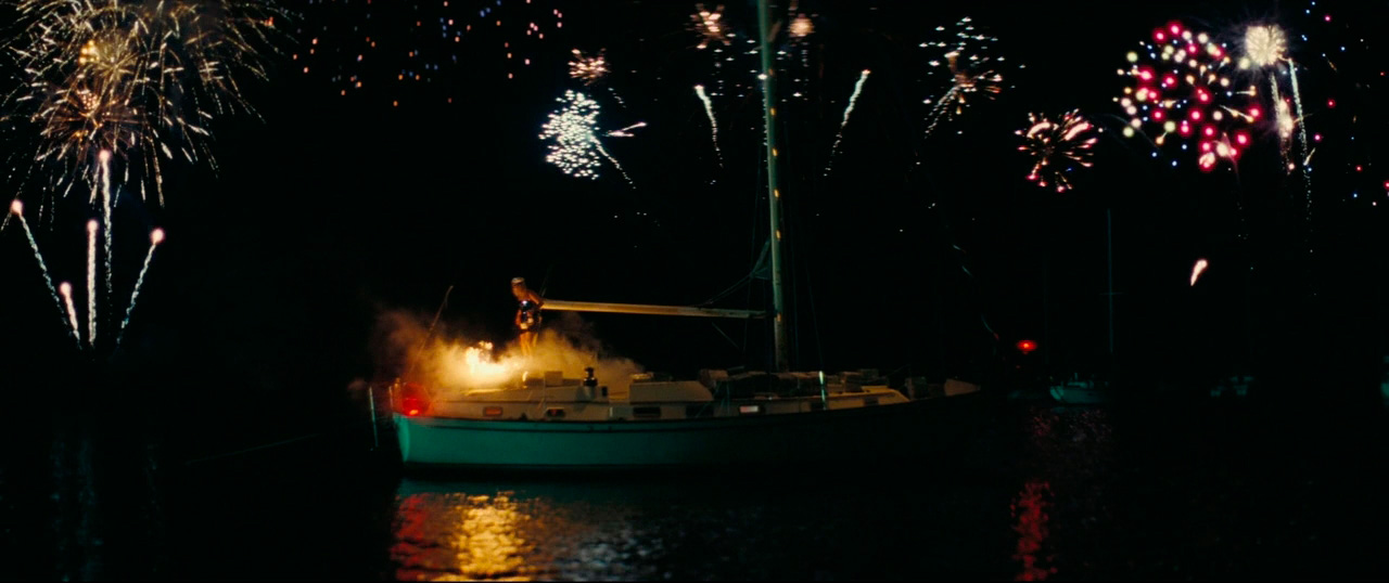 После того как яхта как следует разгорелась, Пес с котенком пересаживается в лодку и куда-то плывет, утверждая, что давно так не веселился.