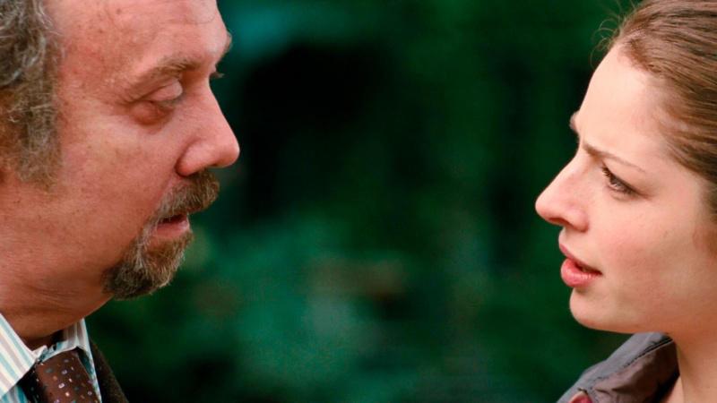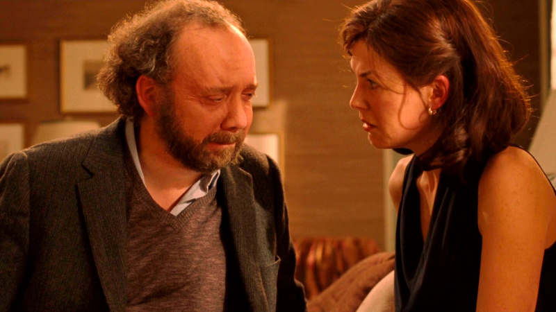 Здесь Розамунд, что называется, вполне на месте. Полностью веришь в то, что Барни в неё мог влюбиться с первого взгляда. Веришь в то, что он её чем-то тоже зацепил, но она не собирается связываться с женатым человеком. Также веришь в то, что Барни всё-таки сумел её завоевать, несмотря на крайне неудачное первое свидание. Ну есть что-то в этом пухлике, который временами ведет себя совершенно по-дурацки, - и это отлично показали и Пайк, и Джиаматти.