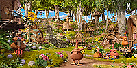 Остров, где живет куриная колония, очень небольшой, Молли его быстро исследовала вдоль и поперек, и теперь ее тянет туда, на большую землю, где должно быть столько всего интересного. Тем более что там рядом с берегом продолжили дорогу, и по ней стали шнырять автобусики веселой расцветки, на бортах которых написано "Fun-Land Farms".