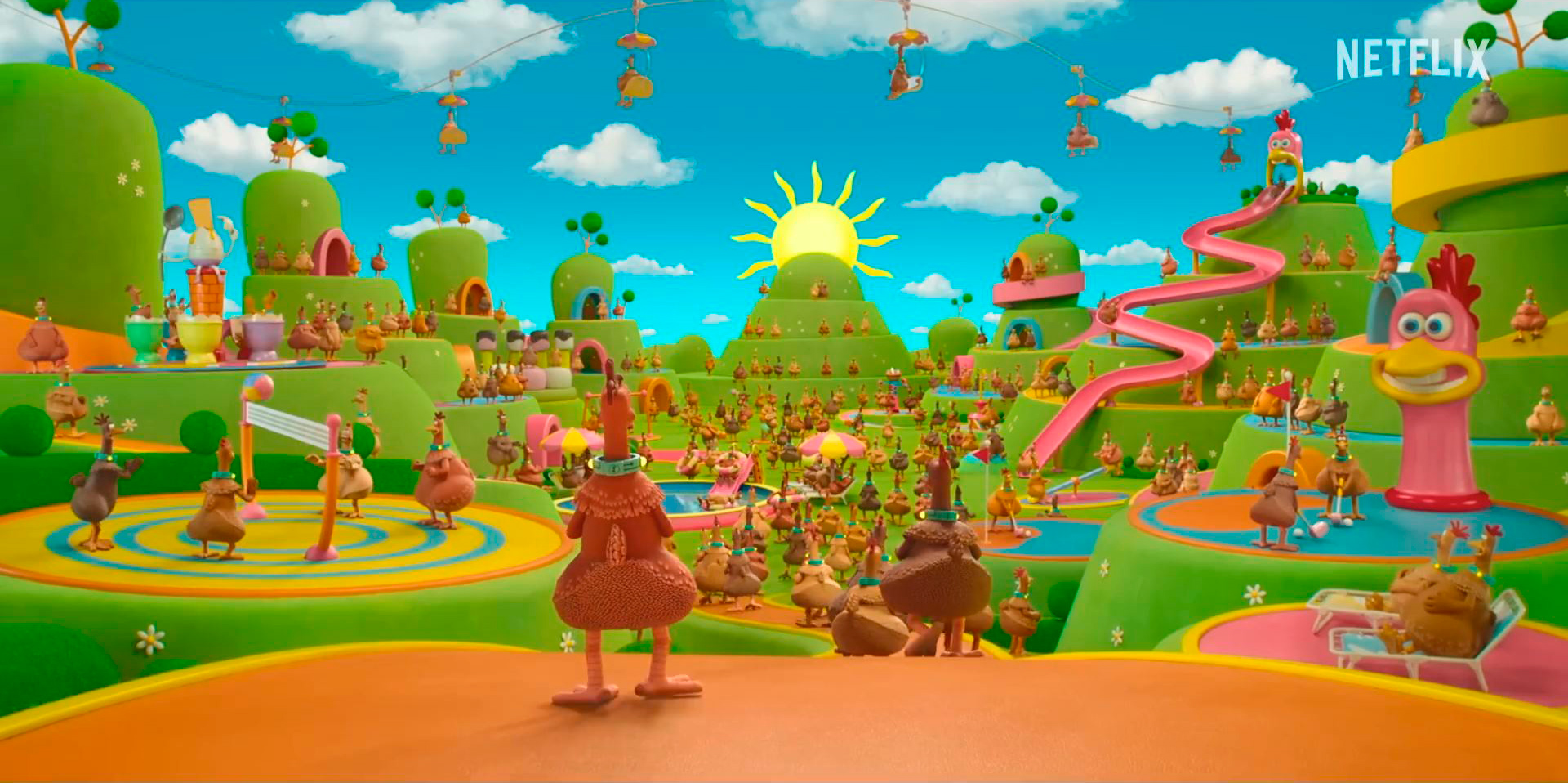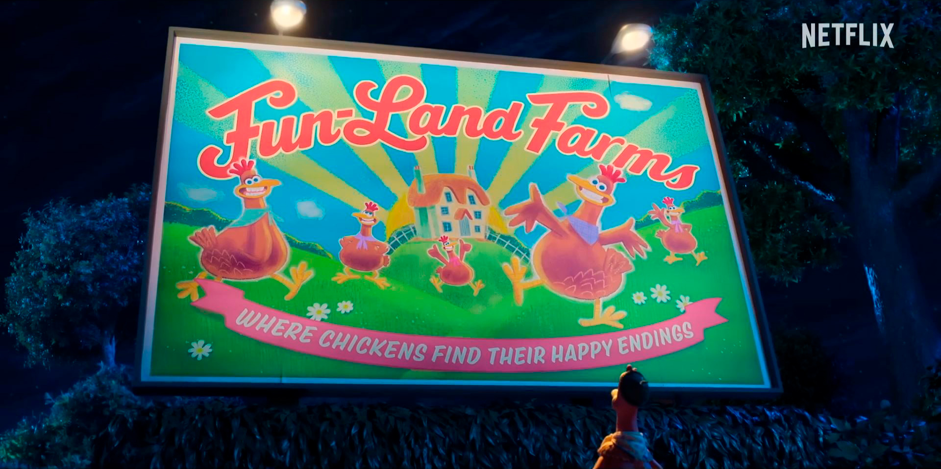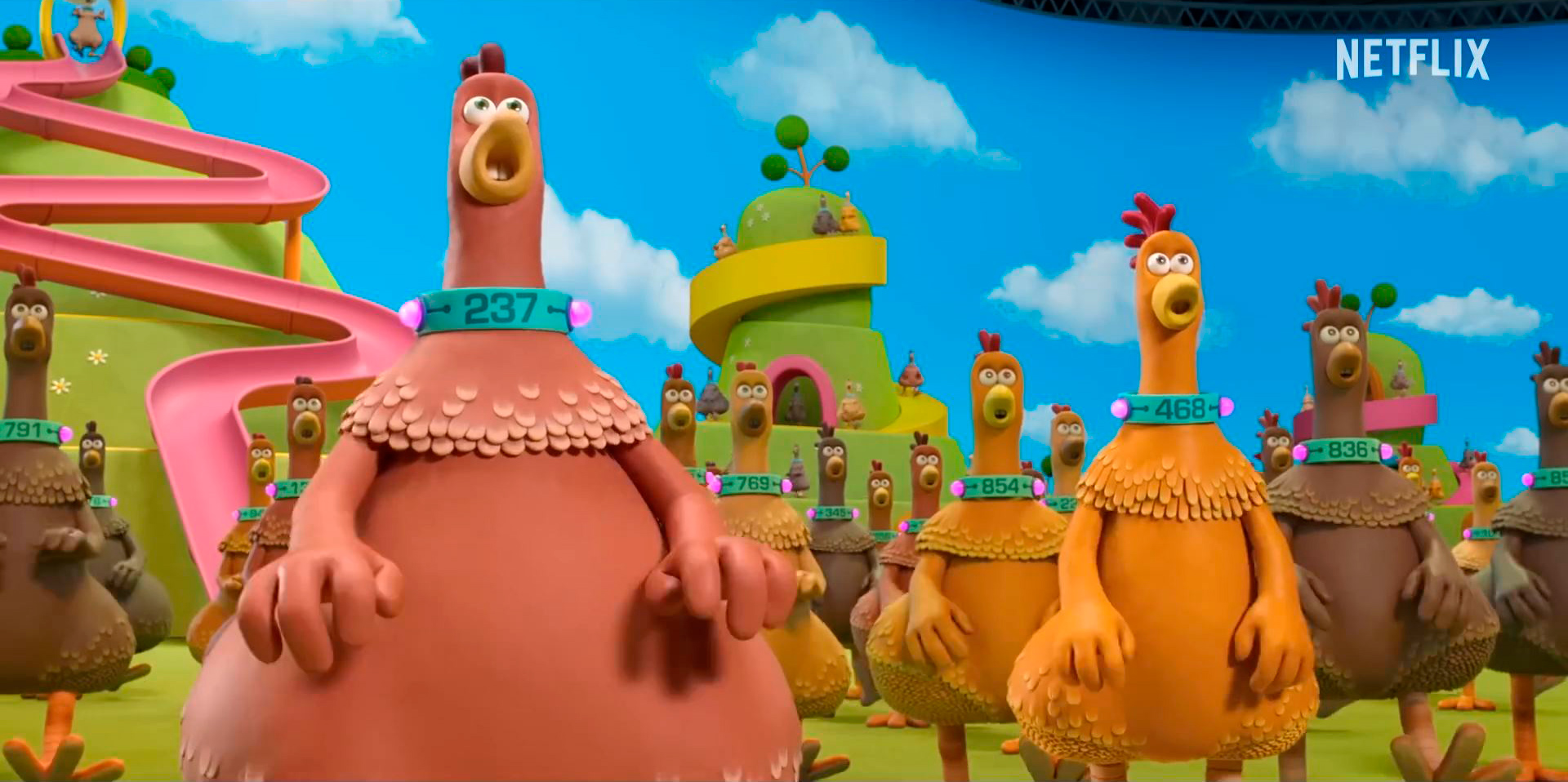 Со сценарной точки зрения подход к сюжету сильно менять не стали: все та же организация побега из курятника, хотя в данном случае в роли "курятника" выступает футуристическая и очень инновационная ферма, которой управляет странноватый ученый доктор Фрай (Ник Моххамед - Нэйт из "Теда Лассо").