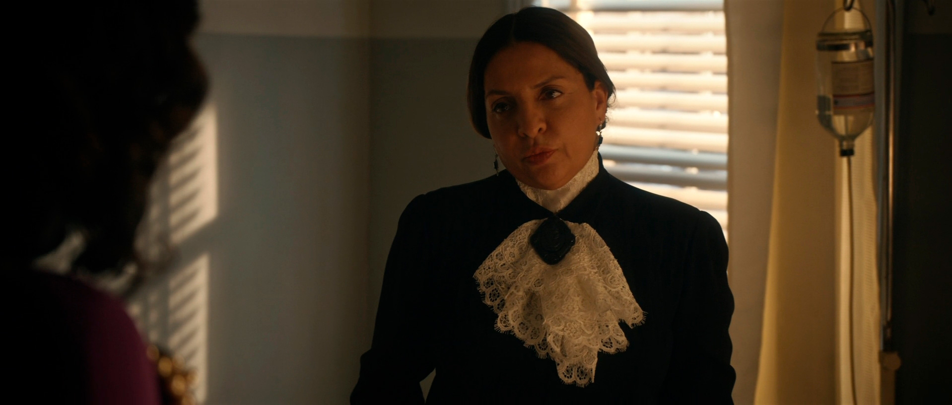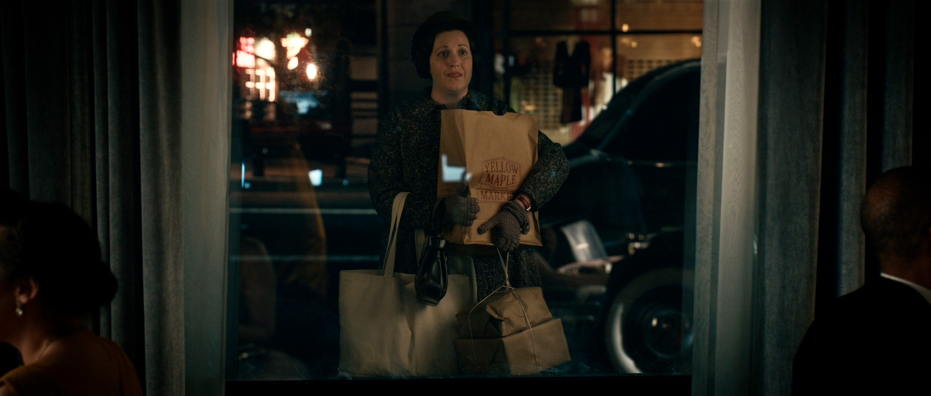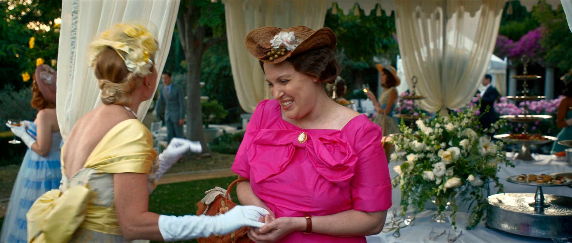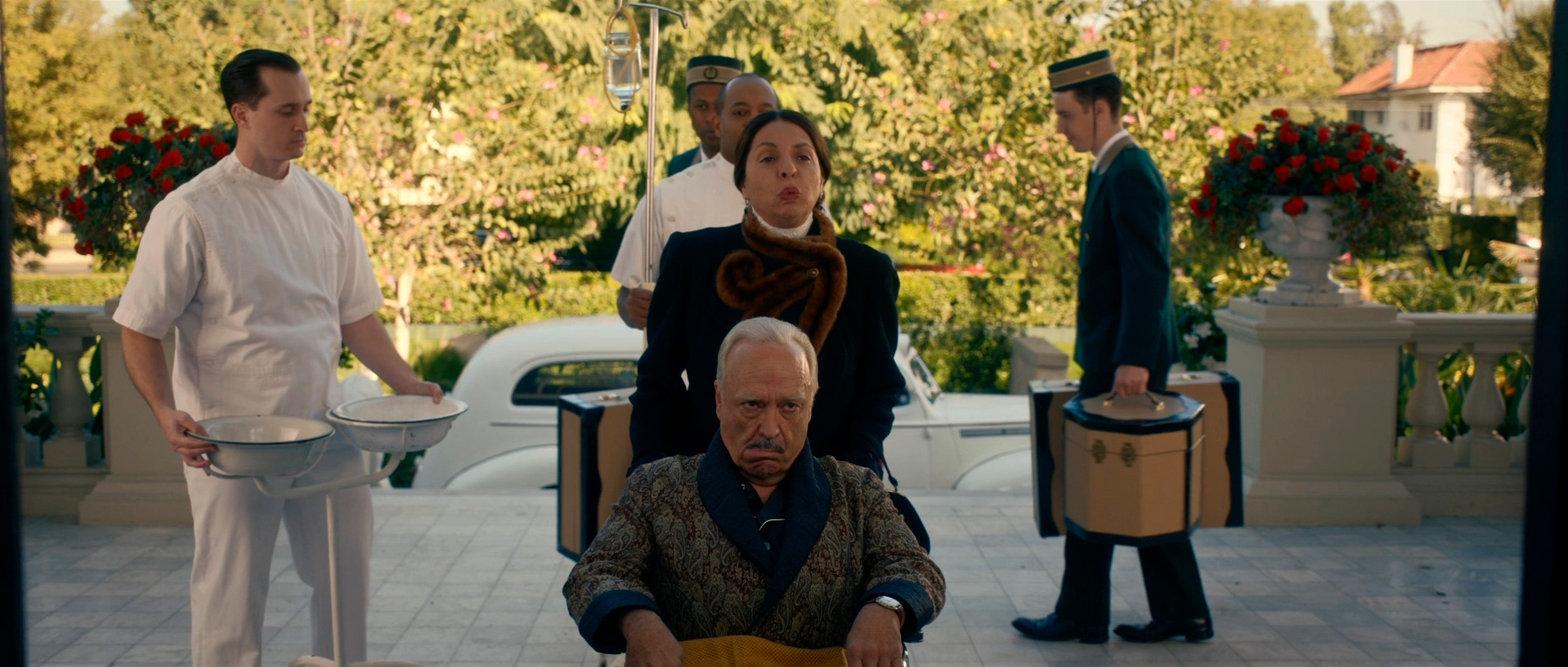 С точки зрения воссоздания обстановки и особенно костюмов здесь все сделано прямо-таки здорово. Нет, оно все, конечно, смотрится несколько мультяшно - как аналогичный элитный клуб во втором эпизоде "Ванда/Вижн", но это сознательно сделанное буйство красок и эффектных платьев - просто визуальный пир для глаз.