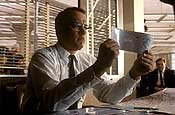 Однако во всем остальном фильм вполне пристойный. Том Хэнкс - так просто порадовал. Обычно он достаточно однообразен, а здесь Хэнкс изображает весьма сложный типаж: полицейского, который одновременно комичный - уж больно ловко Фрэнк водит его за нос столько времени, - но и вызывающий жалость, потому что в личной жизни этот Карл Хэнретти глубоко несчастен. Ди Каприо сыграл несколько хуже, чем я ожидал. Роль у него получилась достаточно плоская и сусальная. Впрочем, в этом вряд ли вина самого актера. На мой взгляд, это все-таки связано с огрехами сценария. А лучше всех в этом фильме смотрится Кристофер Уокен, играющий неудачника Фрэнка-старшего. Сцена в ресторане, когда Фрэнк отказывается принять кадиллак и деньги от сына, одна из лучших в картине.