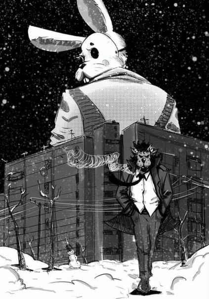 Оригинальный веб-комикс - чистый нуар, по световой гамме чем-то напоминающий "Город грехов": строгая черно-белая гамма с редкими вкраплениями оранжевого цвета.