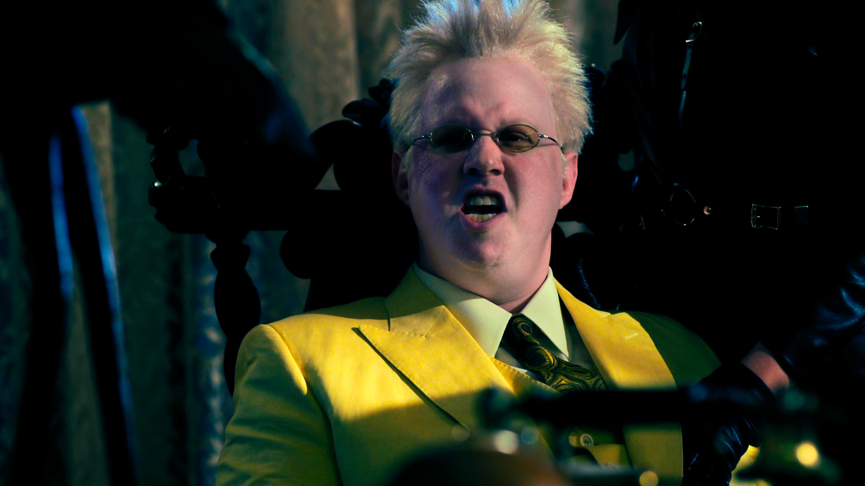 В кислотно-комиксовом разделе картины также было немало любопытных персонажей. Блута сыграл Мэтт Лукас из Little Britain, который, как известно, "единственный гей на деревне". Комиковал и придуривался вовсю, но это именно так и было задумано: попугайные цвета одежды, странные привычки, мерзкий и подловатый характер - получилось вполне забавно.