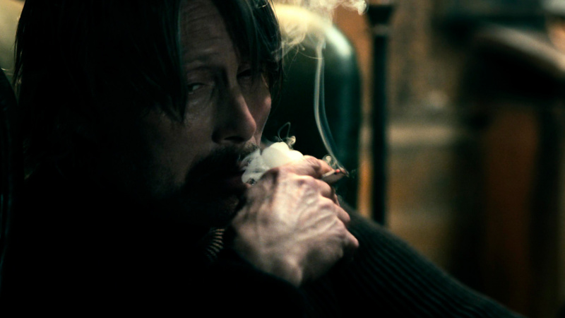 Глядя на сурового Мадса Миккельсена невозможно поверить что он имел многолетние дела с попугаем типа Блута и даже доверял ему деньги. Еще меньше верится в линию с предательством старого товарища. Из-за кого предал, из-за Блута с его гопотой чтоле? Ерунда какая-то.