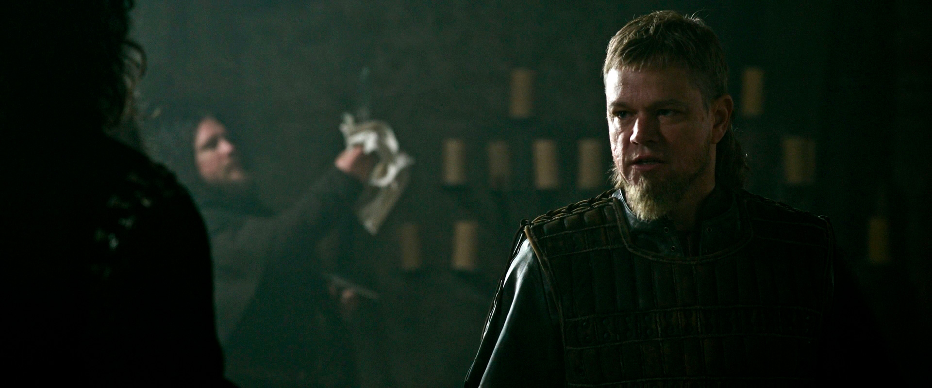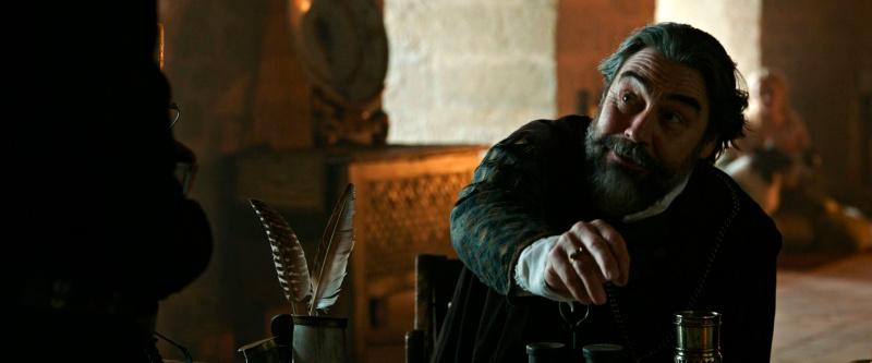 Совершенно неожиданно очень понравился Бен Аффлек в роли графа Пьера Алансонского. Как актер Аффлек обычно довольно уныл (зато он намного более хорош как режиссер), но здесь его граф, который к тому же получил забавный "истинно арийский" цвет волос, очень даже бодренький и охочий до удовольствий. Давненько я не видел Аффлека в подобной яркой и энергичной роли, и на него было приятно посмотреть, а то я как вспомню историю с тем, как его чуть не плачущий Бэтмен ходит и хмурит бровки на Супермена, так сразу хочется пересмотреть какую-нибудь комедию.