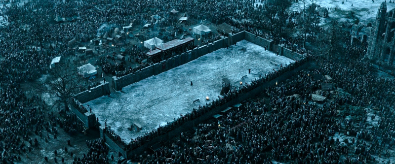 И кстати Алекс в обзоре почему-то не уделил внимания самой дуэли, а она здесь совсем не для галочки и снята максимально грязно и кроваво и по экранному времени идет очень не мало - целых 10 минут ! Выглядит она заметно более реалистично чем скажем финальный поединок Максимуса в "Гладиаторе".