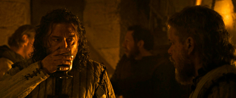 Но понятно, что это не историческая реконструкция и не документальный фильм, так что зрителям совершенно наплевать на то, насколько созвучны эпохе костюмы и доспехи, да и сам режиссер не привык хоть как-то париться исторической достоверностью. Однако в данном случае хотя бы антураж выглядит более или менее аутентично - с обывательской точки зрения - и нет таких явных ляпов и жутчайших штампов, как в "Робин Гуде", с которым я до сих пор не могу понять, что это вообще было, а главное - ЗАЧЕМ?!!