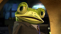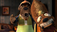 Зато несколько других персонажей вполне порадовали. Лягух по кличке Кувыркун, изображающий нечто вроде Эркюля Пуаро, получился весьма колоритным, равно как и остальные детективы, полицейские и прочая публика, тусующаяся в участке. Тупой, как валенок, немецкий лесоруб, мечтающий сниматься в рекламе, - это просто класс, хотя в переводе он тоже слегка потерял свое очарование. (В оригинале его озвучивал Джеймс Белуши.) Отлично сделали подручного Волка - долбанутую белку-корреспондента, которая отличается порывистыми движениями и весьма малопонятной манерой говорить.