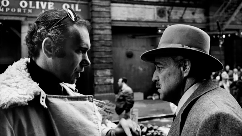 Далее ему пришлось сражаться за кандидатуру Марлона Брандо (Джастин Чэмберс), который планировался на роль Вито Корлеоне: Брандо в Голливуде сильно не любили за неуправляемость и вздорный нрав, и ему фактически был выписан "волчий билет". Также несколько его предыдущих фильмов были провальными, а на такое руководство всегда обращает внимание. А уж решение Копполы на роль Майкла взять никому не известного коротышку-актера Аль Пачино, который до этого мелькнул в паре каких-то проходных фильмов, причем он к тому же еще и был связан контрактом на другую картину - это и просто вызвало приступ бешенства и у Эванса, и у Блюдорна.