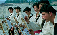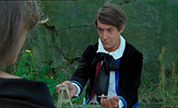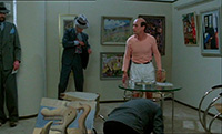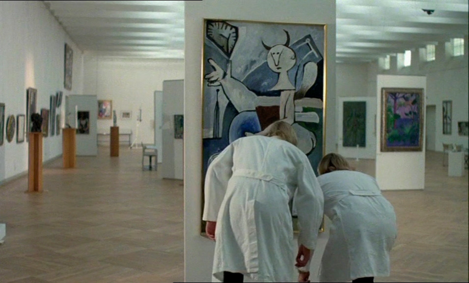 Например, "испанский", на котором они говорят, - это вообще не испанский, а просто некоторые слова из испанского, к тому же обильно перемешанные с итальянскими словами. (Видимо, чтобы подчеркнуть определенные реальные итальянские корни матери Пикассо.) "Русский", на котором говорит Дягилев в фильме (сам Дягилев, разумеется, в кумачовой рубахе с каракулевой накидкой и в каракулевой шапке ), - это больше похоже на чешский, а единственная фраза на шведском в шведском фильме (помимо дикторского текста в шведской версии) - это когда папа Пикассо дон Хосе Руис Бласко (он в фильме играет большую роль, несмотря на то что умирает от сердечного приступа в самом начале картины) снимает трубку телефона и говорит: "Hur fan ska jag veta det?" (Какого черта я должен это знать.)