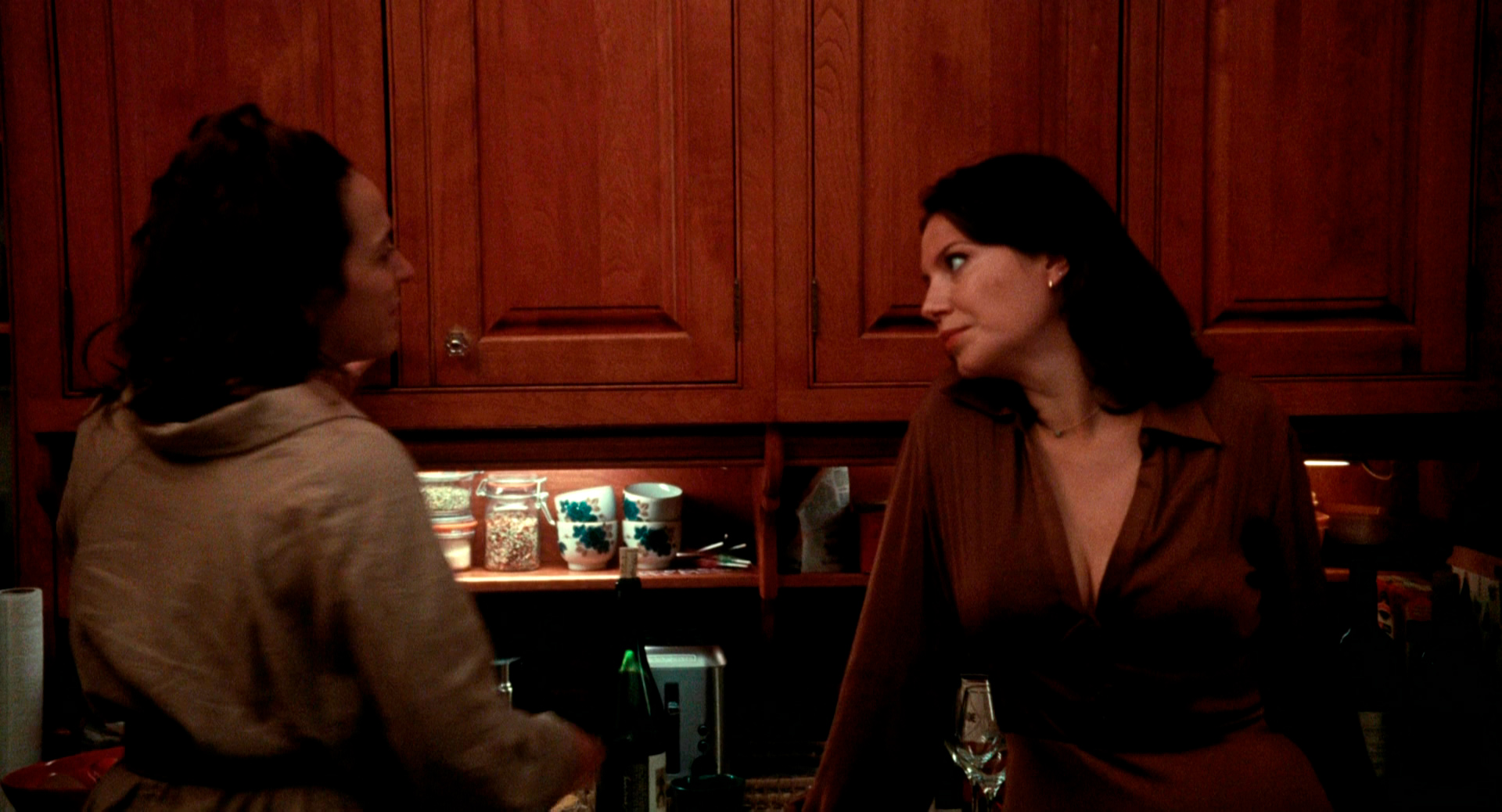 При этом стиль постановки - вовсе не буффонадный. И все выглядит очень жизненно. Как расцвела Софи, начав заниматься любовью по три раза на дню (а не три раза в год, как раньше), как Сильван нежно признался ей в любви ("Чота я на тебя прям запал, в натуре") - еще бы, у него никогда не было интеллектуалок, а в этом есть что-то очень волнующее, как они начали ссориться, потому что у них принципиально разные паттерны поведения (Софи искренне не понимает, с чего он ревнует и злится, и почему его возмущает то, что она пытается заставить его говорить на нормальном французском, а не на этом жутком квебекском диалекте), и как сама Софи об этом рассказывает сначала матери, а потом своей близкой подруге Франсуазе (ее играет сама Монья Шокри), которую так вдохновил пример Софи, что она тоже трахнулась с тренером по фитнесу.