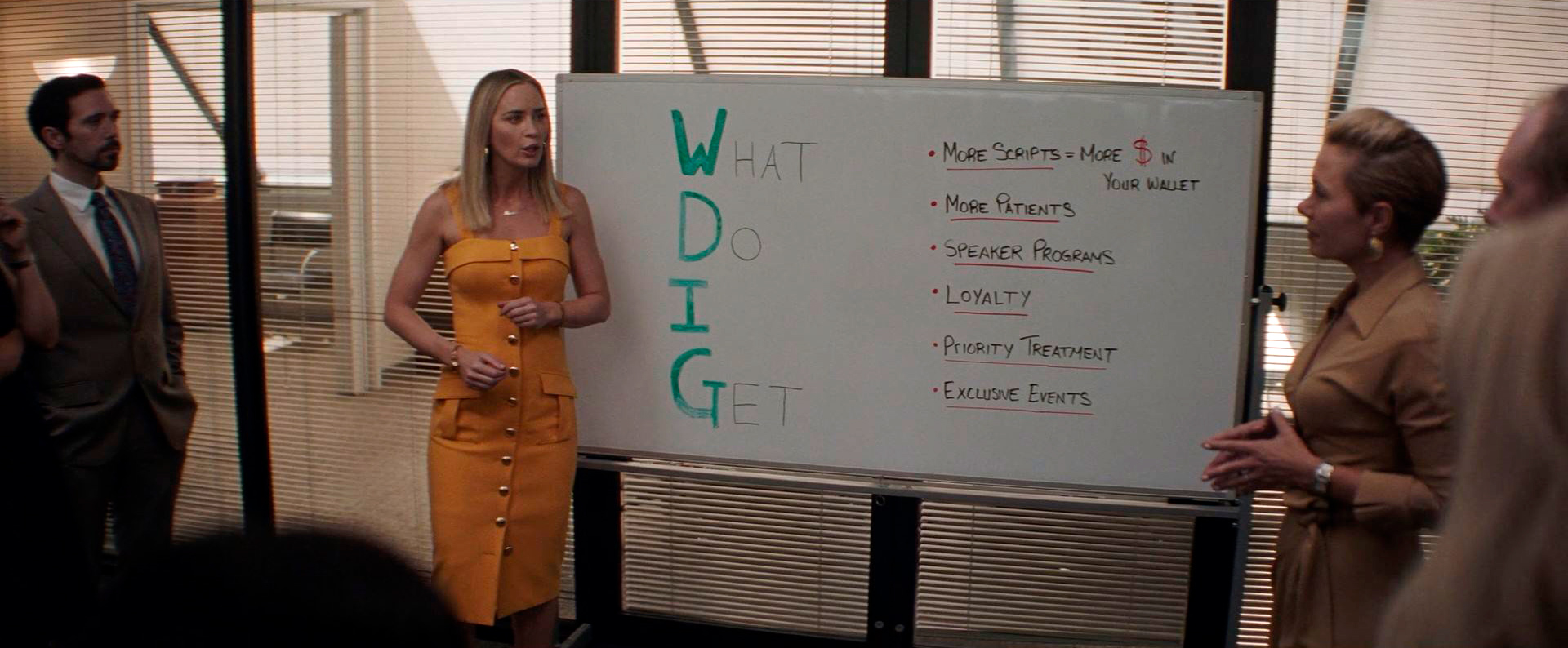 Ну да, в фильме это все показывается, но никакого "любования" этим процессом, как говорят некоторые критики, я тут не вижу. Судя по имеющимся материалам, это все примерно так и происходило - взятки врачам, завуалированные взятки в виде "семинаров" с едой, выпивкой, блэкджеком и искусно продвигающими препарат эффектными женщинами, нацеливание продажников на увеличение оборотов, всесокрушающая жадность руководства, требующего от продажников нарушения закона, при этом тотальное безразличие к людям, получившим зависимость от их препарата - все это в картине демонстрируется совершенно четко и уж точно никакого "любования" всем этим не наблюдается даже рядом.
