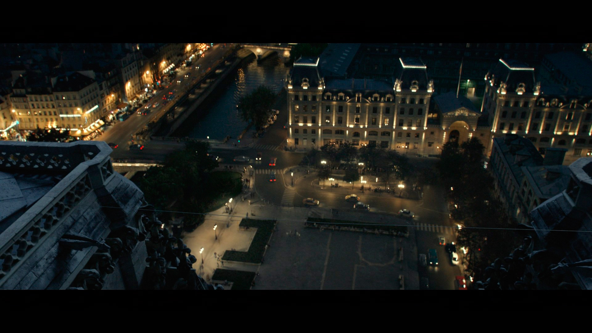 между двумя башнями собора Парижской