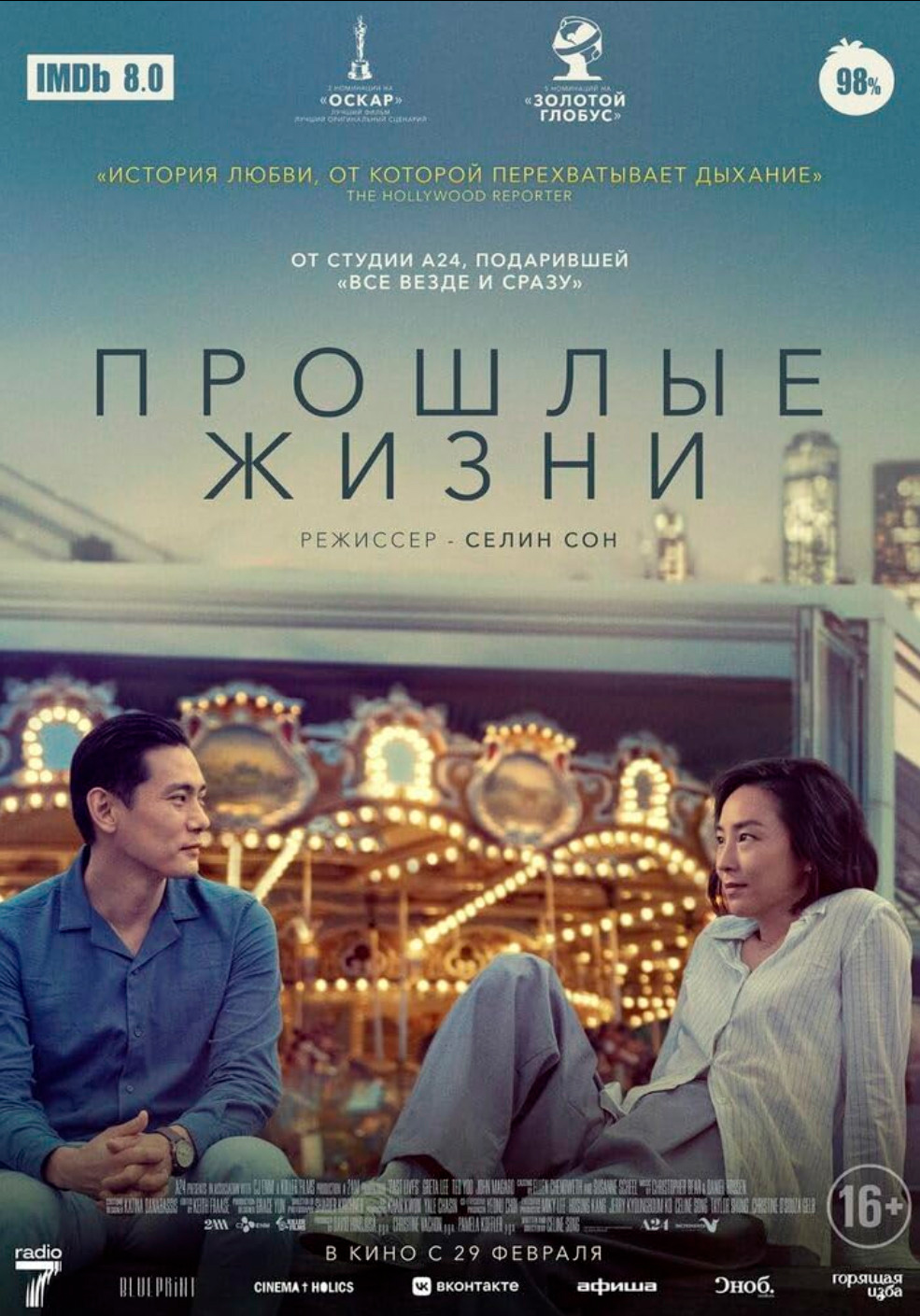 Идея подобного фильма по сценарию Селин Сон заинтересовала студию A24, на которой снимаются авторские, оригинальные и нестандартные фильмы, причем нередко - совершенно замечательные: "Всё везде и сразу", "Маяк", "Из машины", "Кит", "Легенда о зелёном рыцаре", "Герой наших снов", "Солнцестояние", "Неогранённые алмазы", "Зона интересов", "Все страхи Бо" и другие.