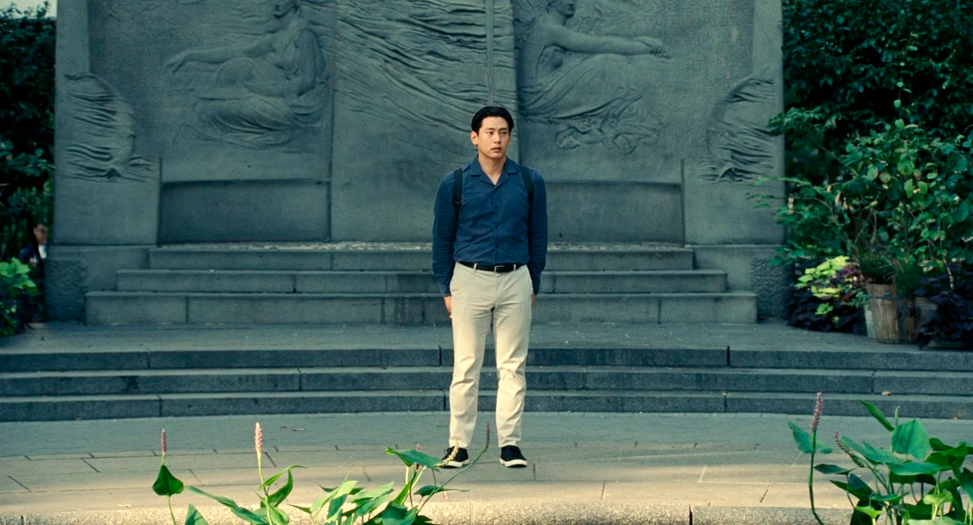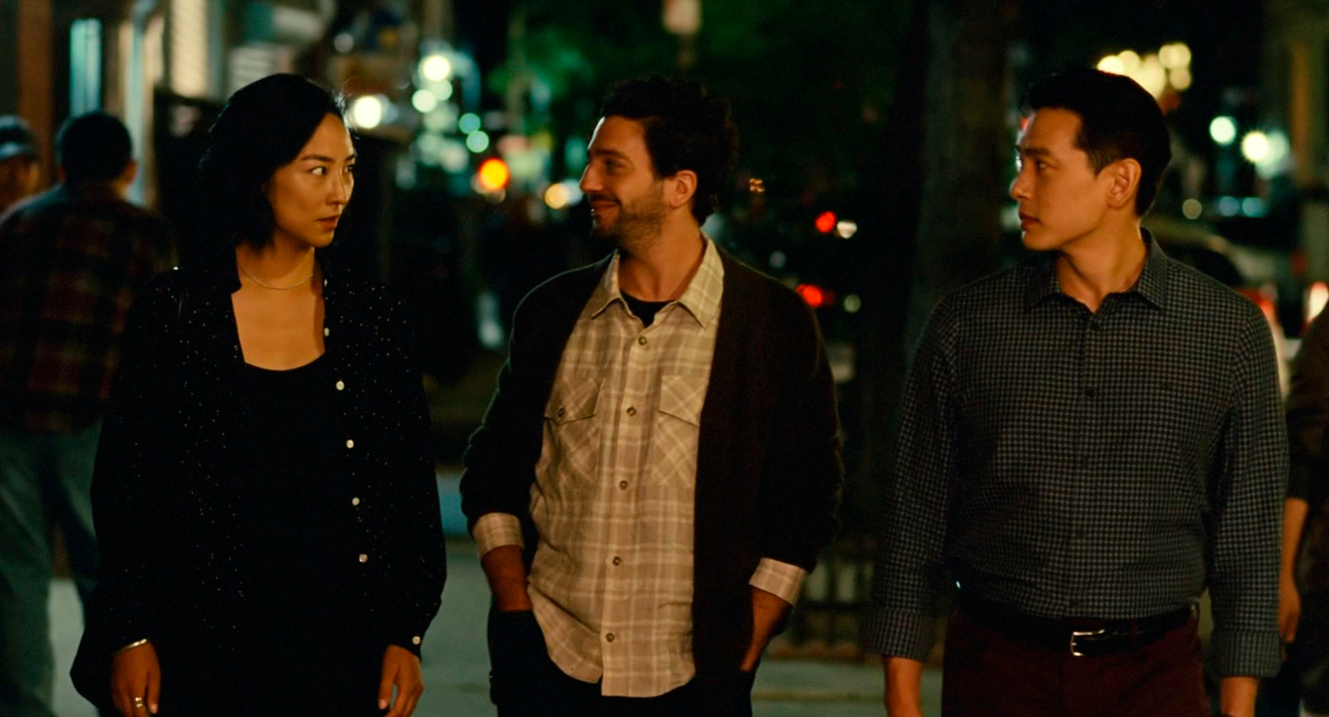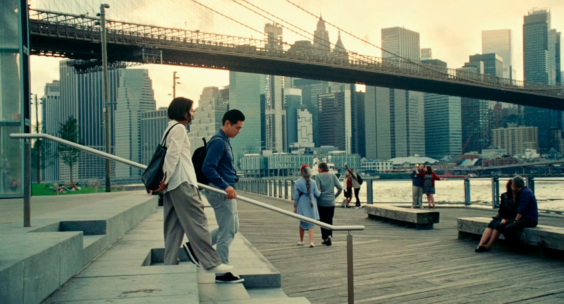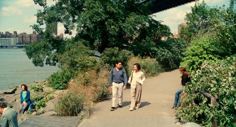 Ну и третья важная роль в картине - Хэ Сон, которого сыграл Тео Ю. В фильме Хэ Сон едва-едва говорит по-английски, в реальности же Тео Ю свободно владеет немецким (он родился в Германии), английским и корейским. Его Хэ Сон в Нью-Йорке - абсолютно потерянный иностранец, который попал в совершенно чужой для себя мир. И зачем он сюда приехал - в погоне за призраком своей школьной любви? Да, они какое-то время общались с Норой по видеосвязи, так что он понимает, кто она сейчас, но он знает, что она замужем, что у нее своя собственная жизнь, и он не собирается эту жизнь разрушать. Он приехал просто чтобы закрыть для себя самого некий гештальт, который не позволял ему самому двигаться дальше в его собственной жизни. Отличная роль, действительно здорово сыграно.