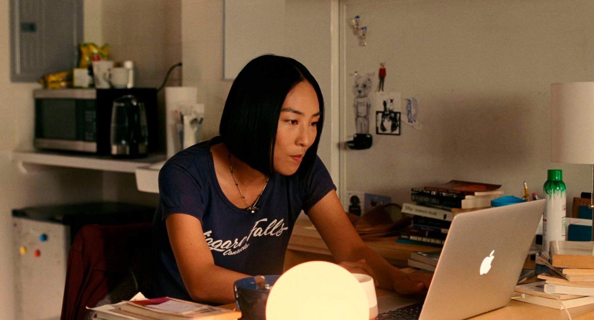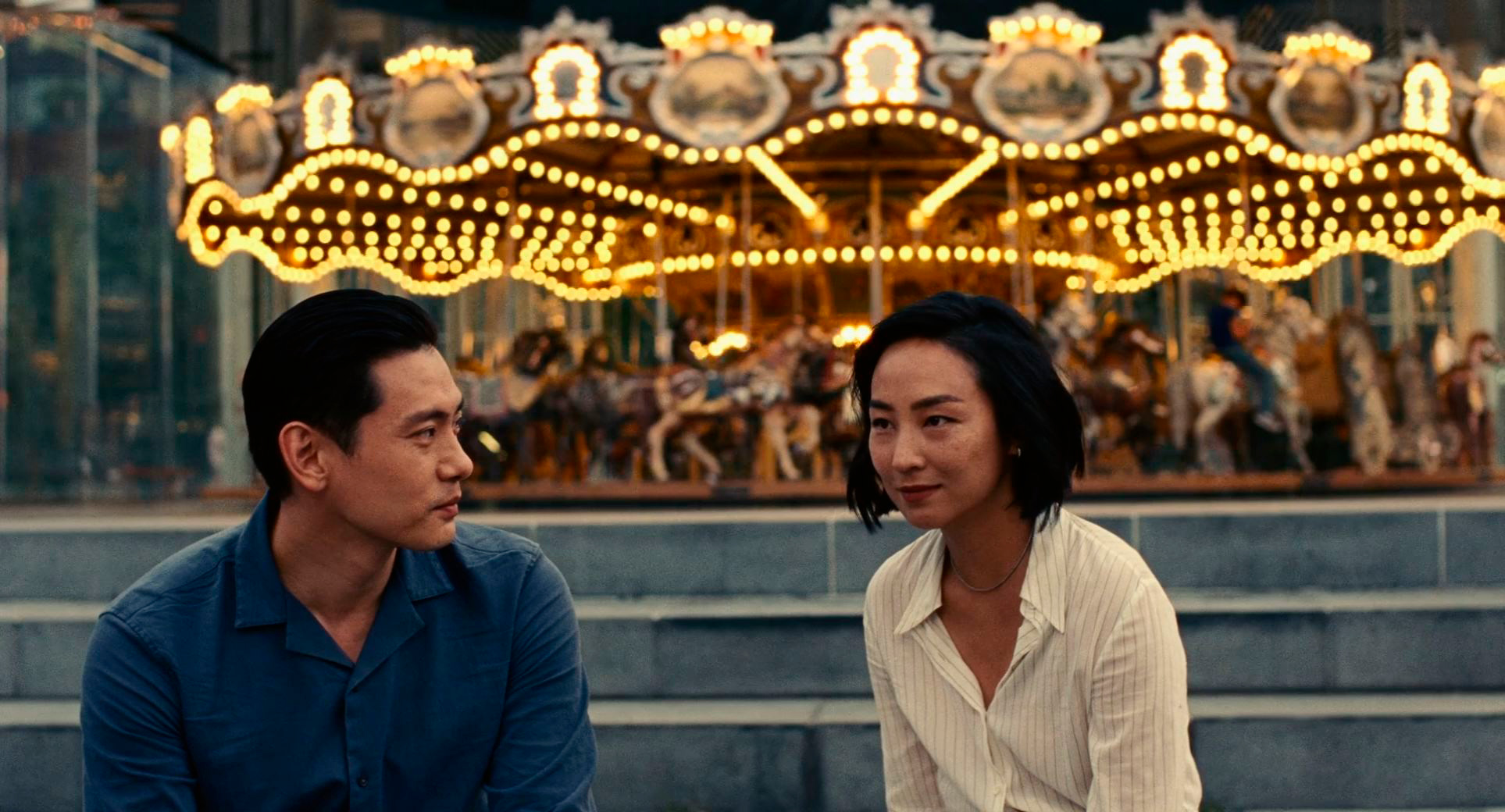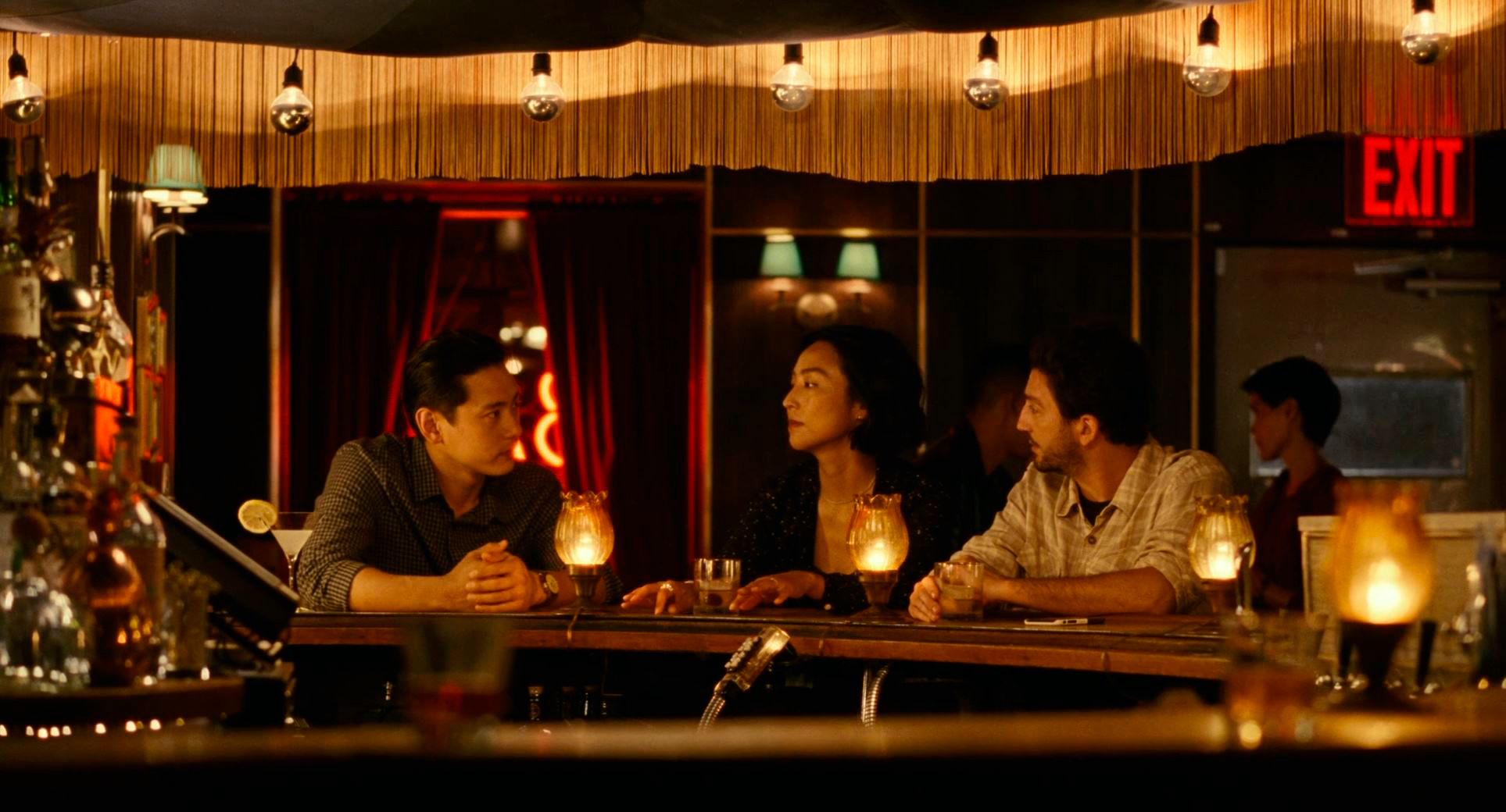 Ну и третья важная роль в картине - Хэ Сон, которого сыграл Тео Ю. В фильме Хэ Сон едва-едва говорит по-английски, в реальности же Тео Ю свободно владеет немецким (он родился в Германии), английским и корейским. Его Хэ Сон в Нью-Йорке - абсолютно потерянный иностранец, который попал в совершенно чужой для себя мир. И зачем он сюда приехал - в погоне за призраком своей школьной любви? Да, они какое-то время общались с Норой по видеосвязи, так что он понимает, кто она сейчас, но он знает, что она замужем, что у нее своя собственная жизнь, и он не собирается эту жизнь разрушать. Он приехал просто чтобы закрыть для себя самого некий гештальт, который не позволял ему самому двигаться дальше в его собственной жизни. Отличная роль, действительно здорово сыграно.