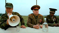 Особенно меня почему-то впечатлил обаяшка Тактаров...Помните ту сцену, когда доообрый отец-полковник с дообрым таким выражением лица укладывает героя живьем в гроб? "Входит в систему обязательной подготовки бойца!" Сцена - жесть! Неужто и правда - входит? Хотелось бы знать, через какой временной отрезок полузадохнувшегося бойца извлекли обратно? Тут и переборщить было недолго... Или, может, у него гробик был с кондишеном?