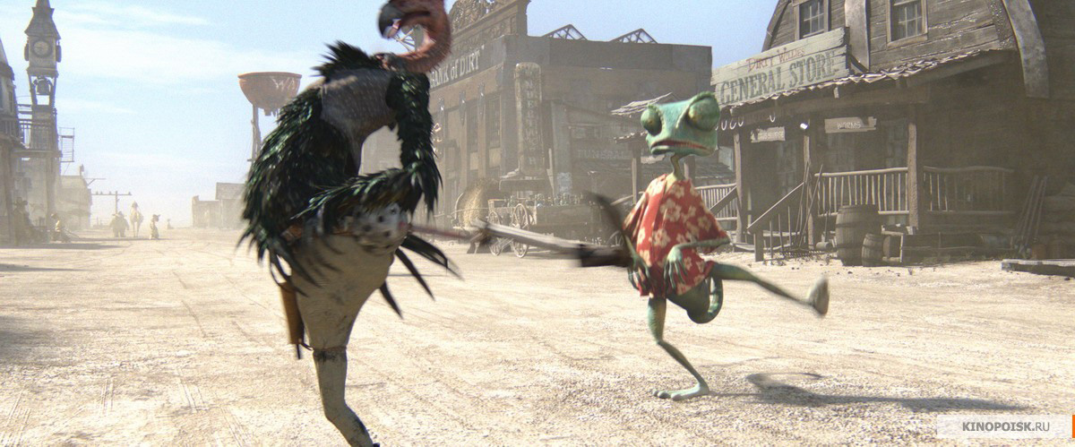 Возможно, такой эффект первой половины "Ранго" был из-за неузнавания некоторых цитат и аллюзий. Даже большинства. Впрочем, я и не обязан был их знать. А учитывая, что мультфильм не подавался как пародия, не это в нём было главное. Однако, я убеждён, что даже пародия должна быть интересна людям не знающим объекта пародирования. Но это другой разговор.