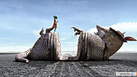 Однако хамелеон встречает на шоссе перееханное колесом пустынное животное (Альфред Молина), и тот ему рассказывает о Духе Дикого Запада, о том, что только на Той Стороне Дороги можно найти что-то важное и просветлеть, в результате чего Ранго пускается в почти безнадежное путешествие по пустыне.