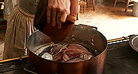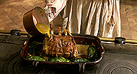 P.S. Я где-то читал, что в Каннах этот фильм показывали под названием "Пот-о-фё". Это традиционное французское блюдо (дословно - котелок на огне), представляющее собой наваристый суп из говядины и овощей. Первоначально пот-о-фё было едой бедняков: крестьяне подвешивали котелок над огнем и варили в нем мясо и сезонные овощи. Позже, как французский буйабес или испанская паэлья, пот-о-фё стало очень популярным среди всех слоев французского общества, включая королевский двор, и теперь это неотъемлемая часть французской кухни. Именно пот-о-фё собирался приготовить Доден для европейского принца, которого он ждал с ответным визитом. Этим он хотел продемонстрировать, что даже такое простое вроде бы блюдо можно сделать так, что оно затмит все тяжеловесные изыски его повара.