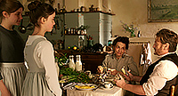 Основное действие в картине происходит на кухне, где, как я говорил, как будто оживают картины старых мастеров, но в некоторых эпизодах герои выходят на природу, и вот там уже как будто оживают картины французских импрессионистов - прежде всего, Клода Моне. Краски, одежда, создающееся настроение - это сделано совершенно замечательно.