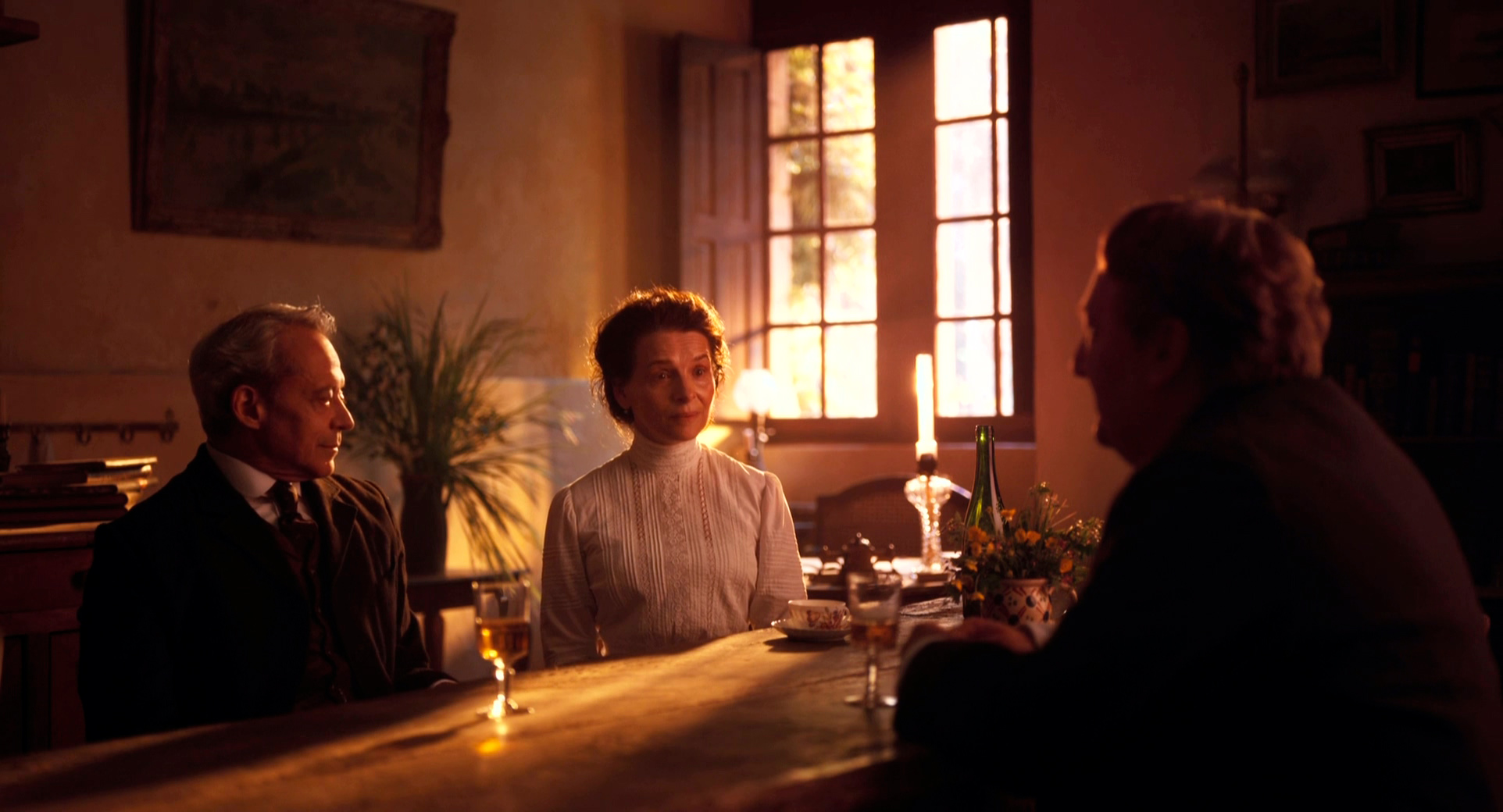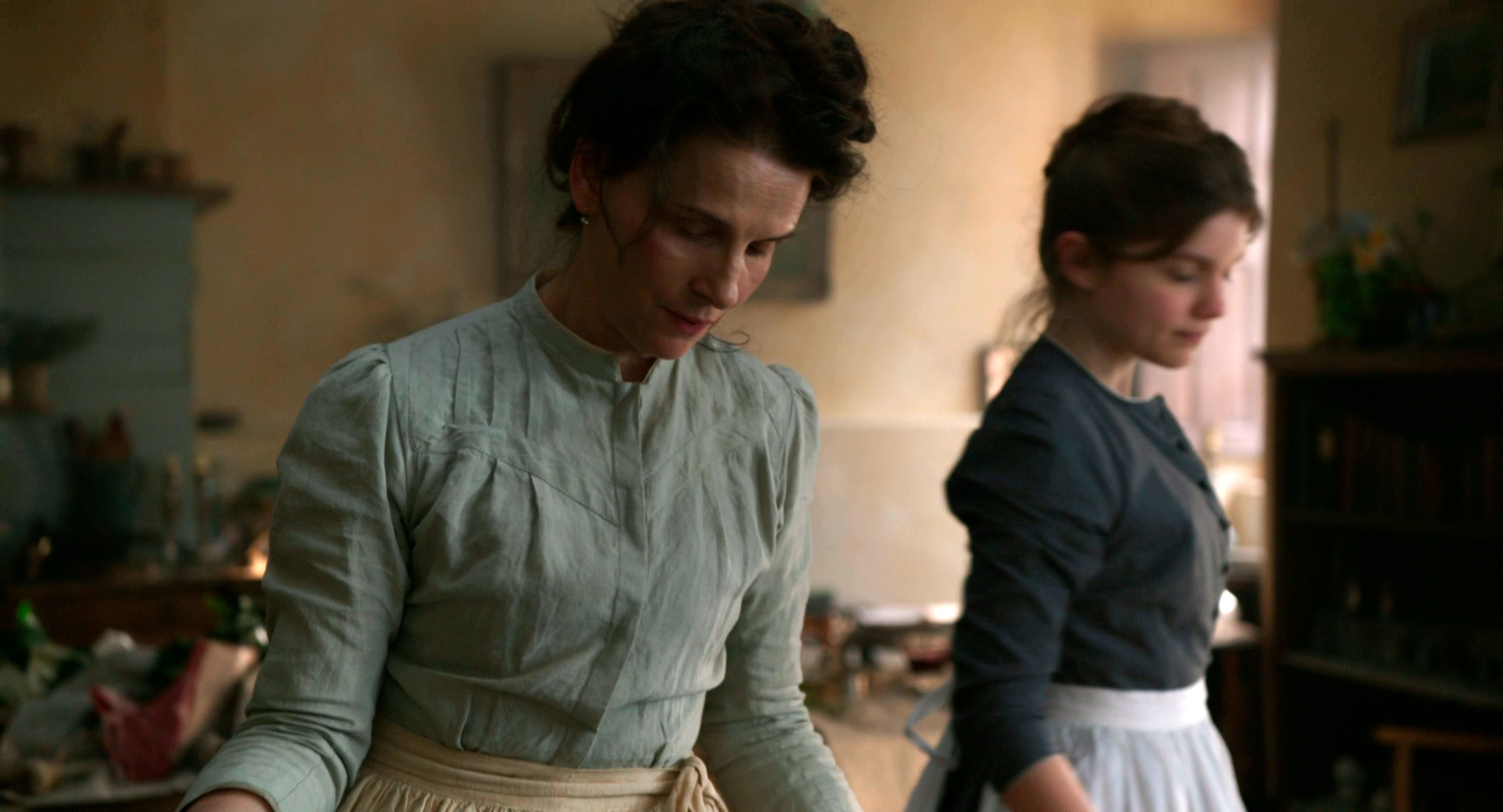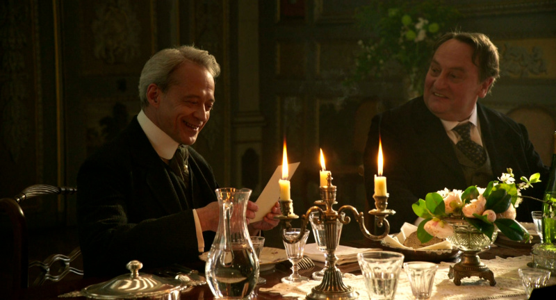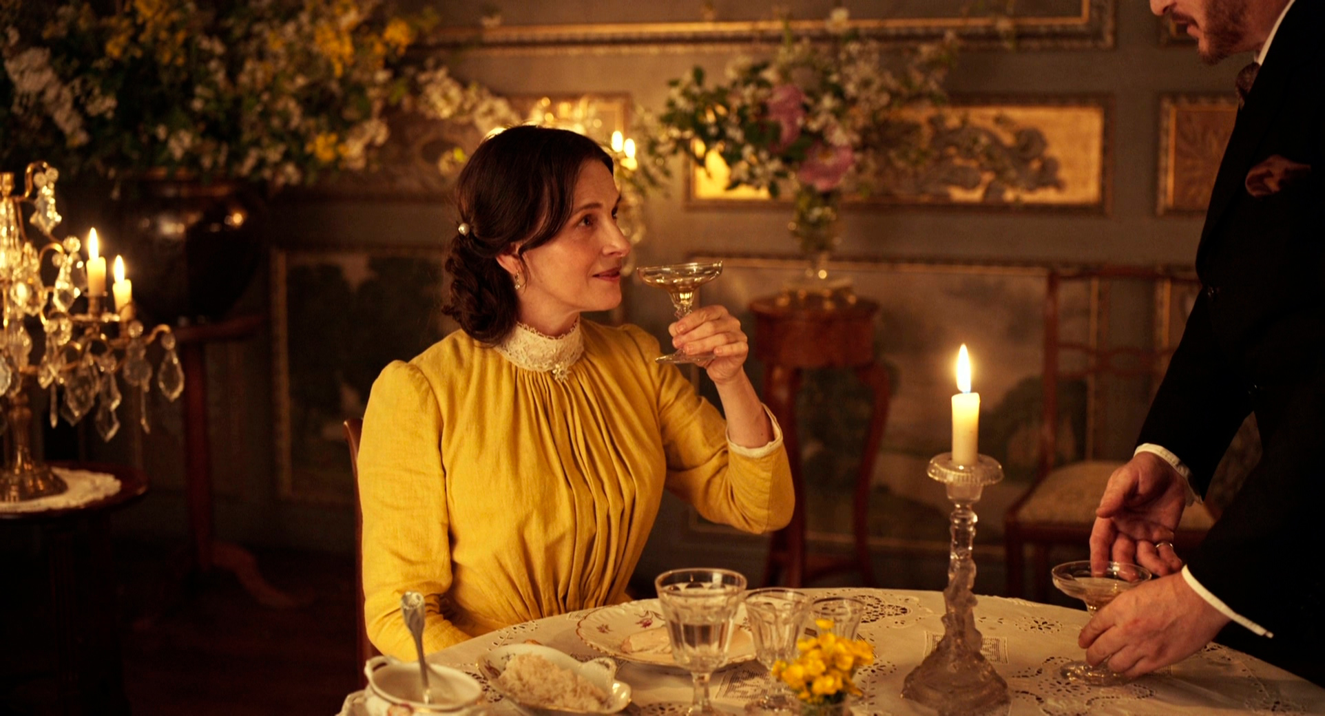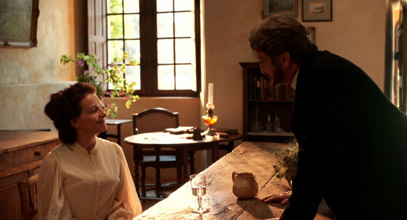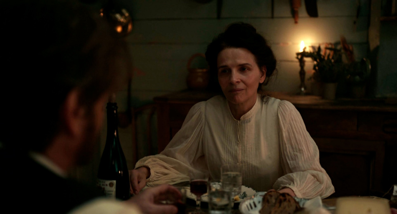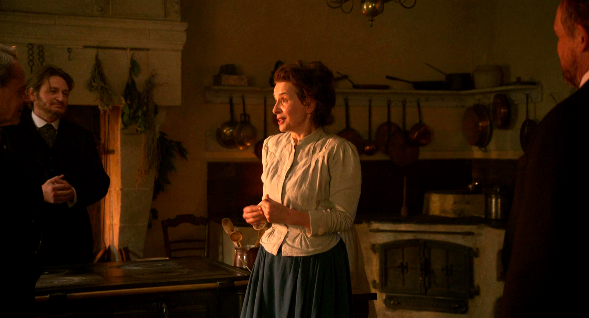 Жюльет Бинош не относится к моим любимым актрисам, мне она только в "Шоколаде" понравилась. Здесь ее Эжени - просто чудо как хороша. Она ничего ни от кого не требует, старается быть незаметной, на все происходящее она смотрит с легкой улыбкой, тем не менее ее героиня мгновенно запоминается. А небольшие эпизоды того, как они разговаривают с Доденом один на один - совершенно удивительные по тому, насколько много о них и об их отношениях говорят их взгляды и жесты, а не слова.