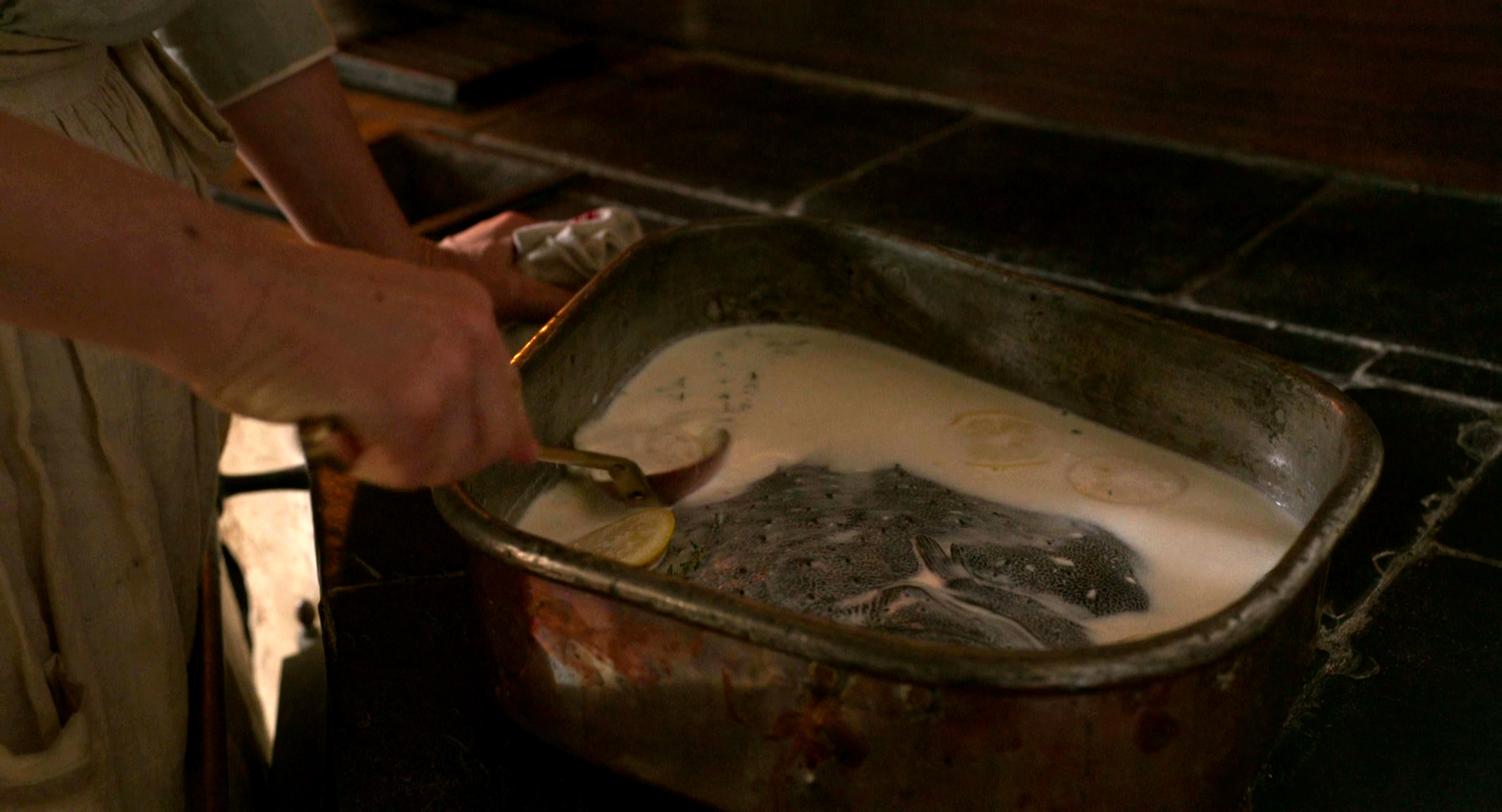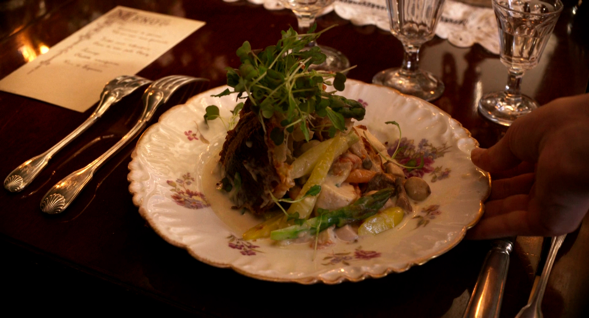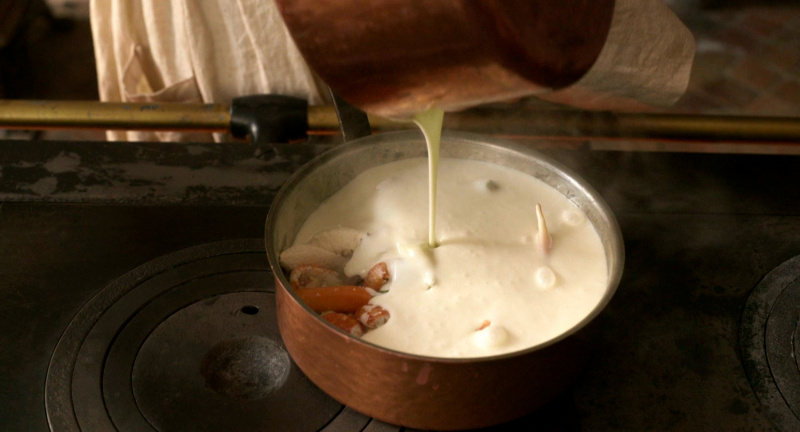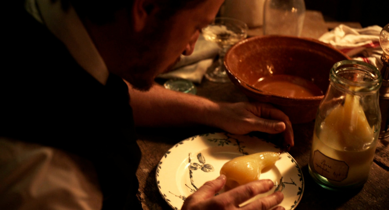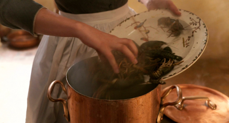Я не зря сказал, что то, как герои перемещаются по кухне в процессе приготовления - это своего рода хореография. Каждый из них знает, что будет делать в следующий момент, они много лет работают вместе - это прежде всего Эжени и Доден, - и их действия выверены до мелочей. Они друг другу никак не мешают, они на кухне ни разу не сталкиваются, потому что они знают, что каждый из них будет делать в процессе приготовления того или иного блюда. Они на кухне практически не разговаривают, они понимают друг друга безо всяких слов.