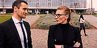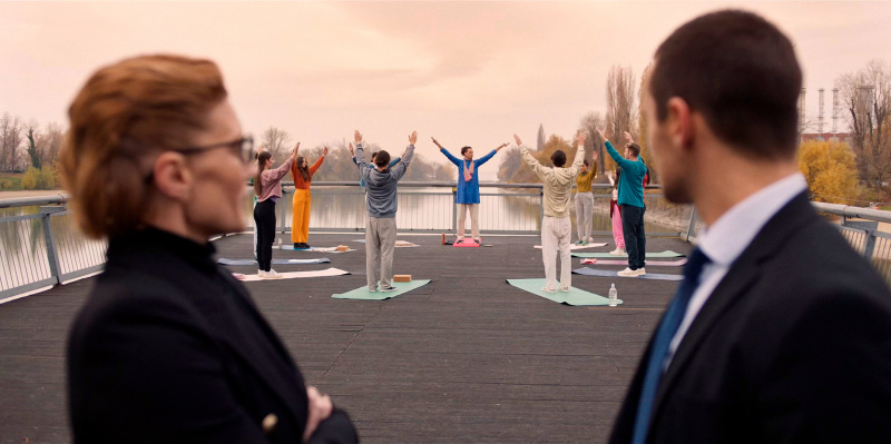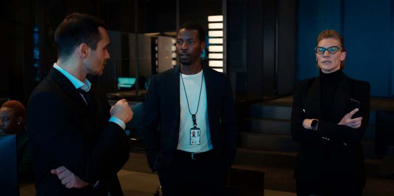 На земле за поддержание сюжета на должном уровне дурдома отвечали Кэти Сакхофф, вполне забавно сыгравшая Кэтрин Брант, и болгарин Юлиан Костов, сыгравший ее подчиненного - слегка истеричного спецагента Эрона Хантера, - а ведь он только что играл простого русского парня в третьем сезоне "Белого лотоса".