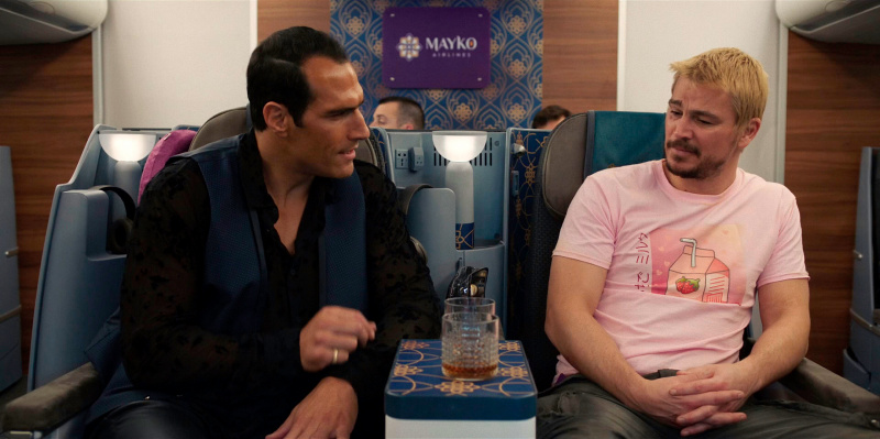Из самолетных персонажей отметим боевую стюардессу Ишу, которую хорошо сыграла Чаритхра Чандран: она и очень симпатичная, и конкретно боевая, а также ненадолго вышедшего на первый план гламурного убийцу Чайена (Марко Сарор), который был очень забавен, но его надолго не хватило.