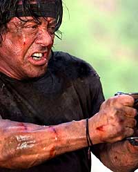 Казалось бы, подобный успех повторить просто невозможно, но Слай тем не менее не сидит на заднице и через несколько лет представляет сценарий нового фильма - о вьетнамском ветеране Джоне Рэмбо, которого жизнь заставила проявить свои военные умения на гражданке. Вышедший в 1982 году фильм "Первая кровь", в котором Сталлоне также сыграл главную роль (отбив ее у Джона Траволты, Аль Пачино, Дастина Хоффмана, Клинта Иствуда и Стива Маккуина), "Оскаров" уже никак не получил, однако собрал отличную кассу ($125 миллионов при $15 миллионах затрат), а персонаж Рэмбо среди киноманов стал культовым.