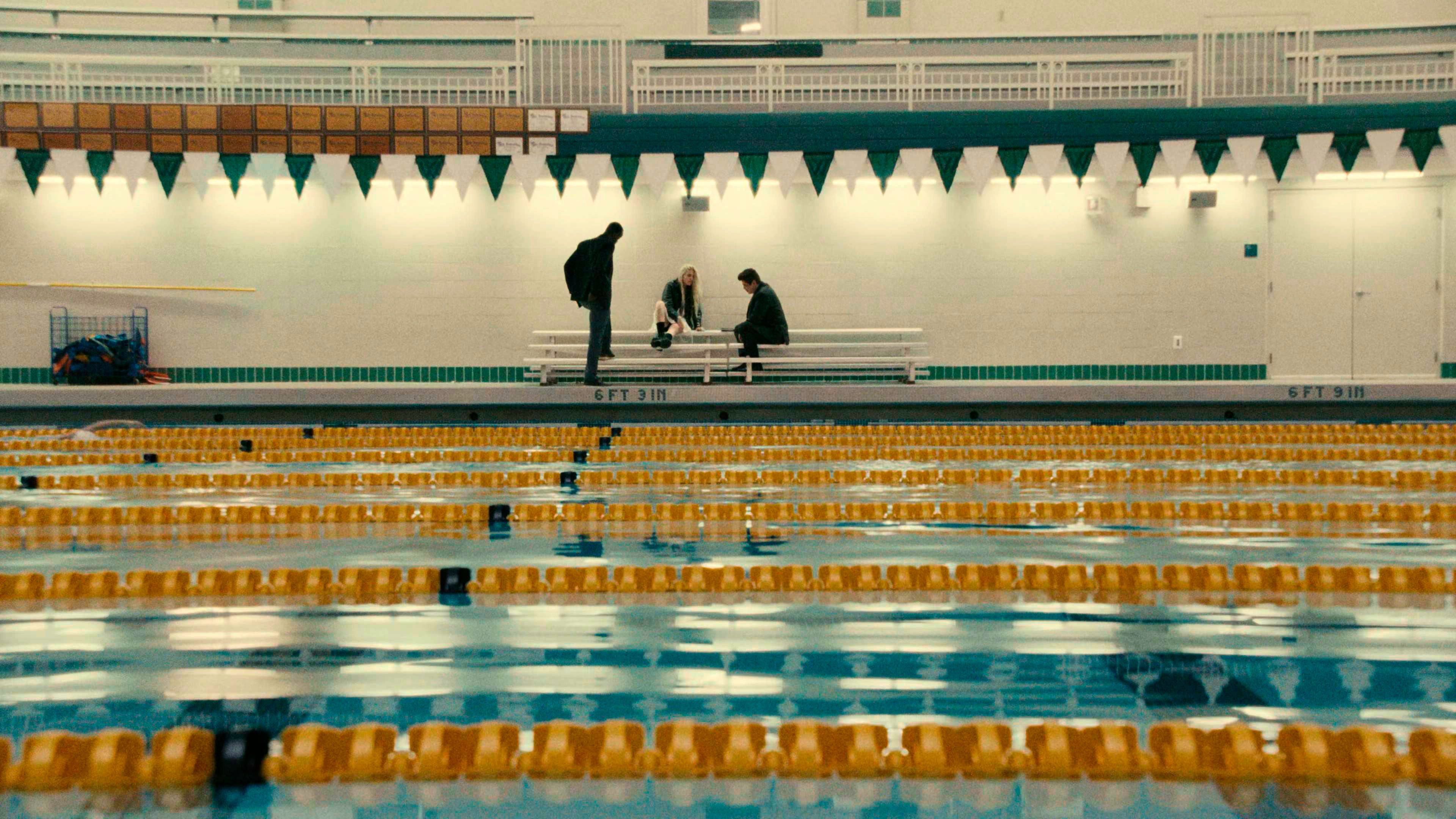 И эта атмосфера здесь впечатляет - постановщики чередуют очень эффектные съемки с дрона со слегка клаустрофобной атмосферой помещений, во многих сценах присутствуют зеркала, отражения в которых влияют на восприятие, персонажей нередко показывают со спины, как будто за ними кто-то следит - в общем, с визуальной точки зрения, особенно если на это обращать внимание, картина сделана очень хорошо.