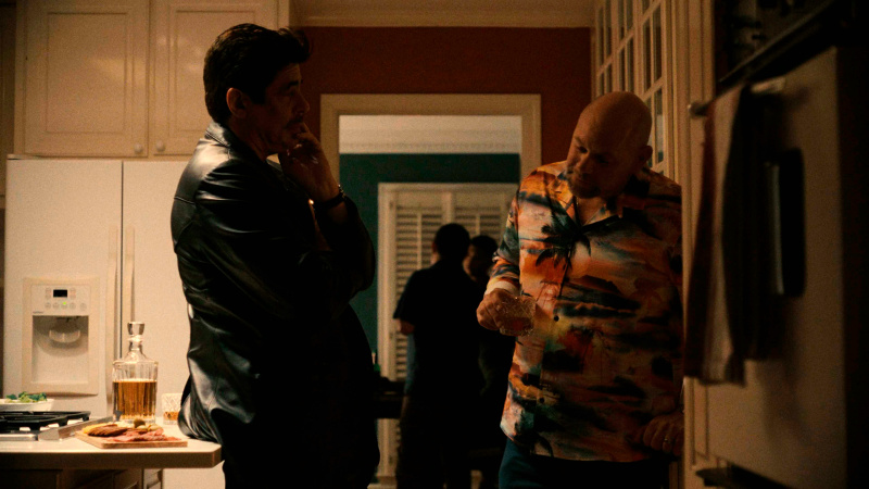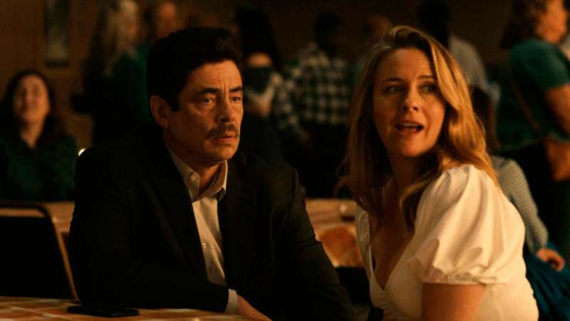 Алисия Сильверстоун, которая сто лет не появлялась в заметных картинах, здесь играет жену Николса, которая определенным образом влияет на происходящее. Они с Бенисио в 1997 году сыграли главные роли в фильме "Лишний багаж", и пару лет тогда встречались, а теперь сыграли пару спустя двадцать шесть лет. Получилось хорошо, та самая "химия" между ними явно видна. Кстати, обратите внимание на то, что ее персонаж своим подругам всегда рассказывает о произошедшем совсем не так, как это было на самом деле.
