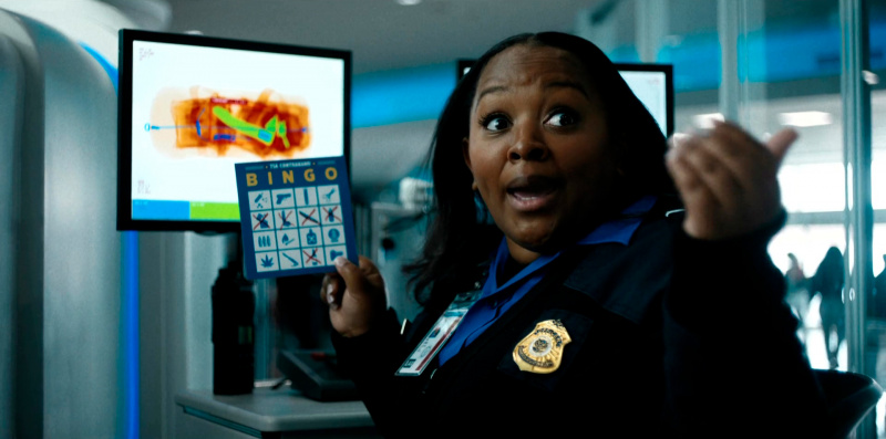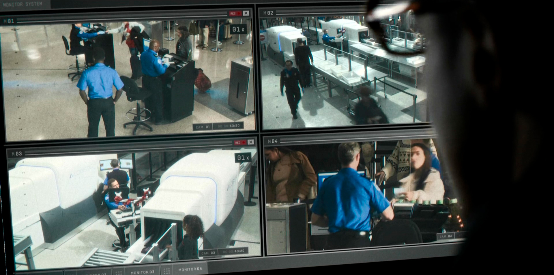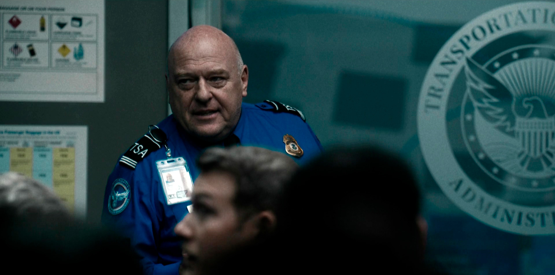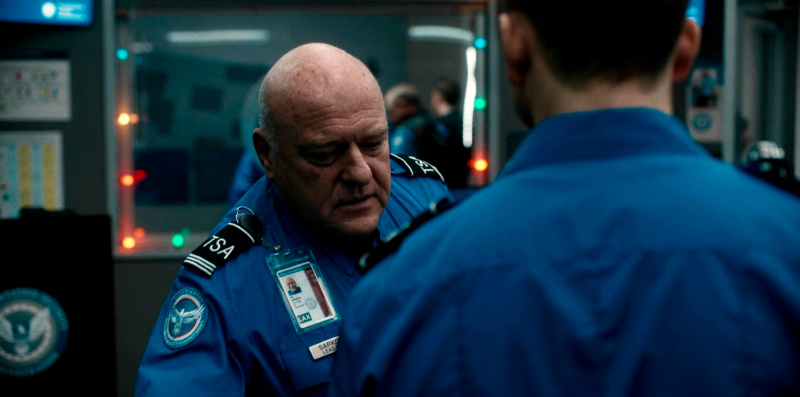 Они уже все разведали и собирались было похитить семью Джейсона, который обычно сидел на интроскопе, чтобы его шантажировать - Джейсона, конечно, шантажировать, а не интроскоп. Но Джейсон сменился с Итаном, поэтому террористам придется резко менять план и нарыть что-нибудь на Итана, у которого беременная Нора стоит на стойке регистрации в аккурат напротив огромного окна здания аэропорта, доступная всем террористическим снайперам.