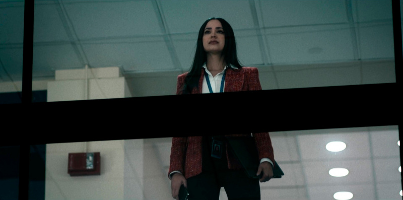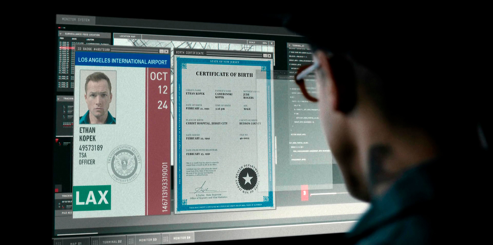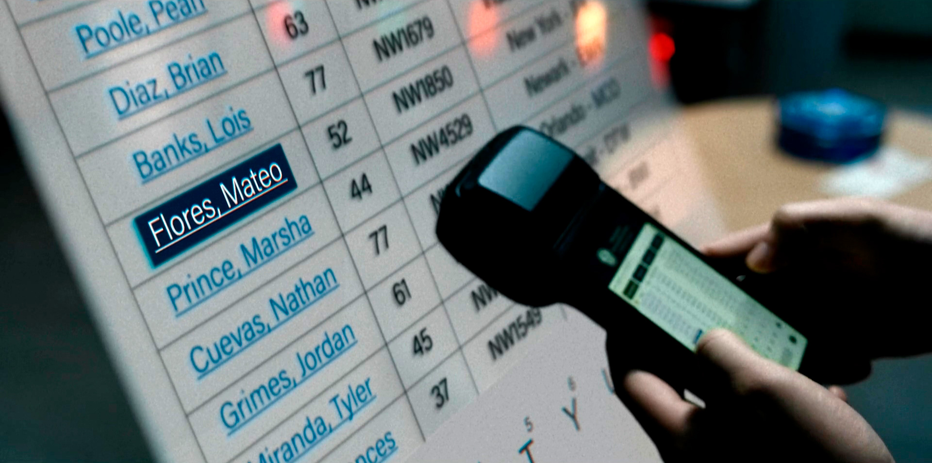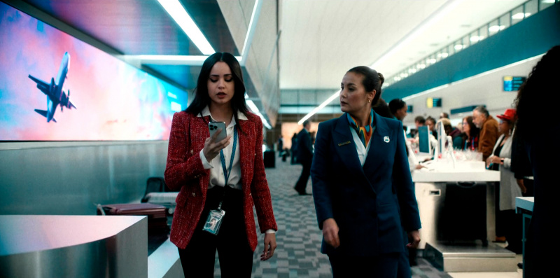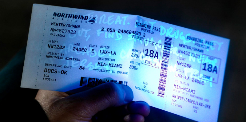 Они уже все разведали и собирались было похитить семью Джейсона, который обычно сидел на интроскопе, чтобы его шантажировать - Джейсона, конечно, шантажировать, а не интроскоп. Но Джейсон сменился с Итаном, поэтому террористам придется резко менять план и нарыть что-нибудь на Итана, у которого беременная Нора стоит на стойке регистрации в аккурат напротив огромного окна здания аэропорта, доступная всем террористическим снайперам.
