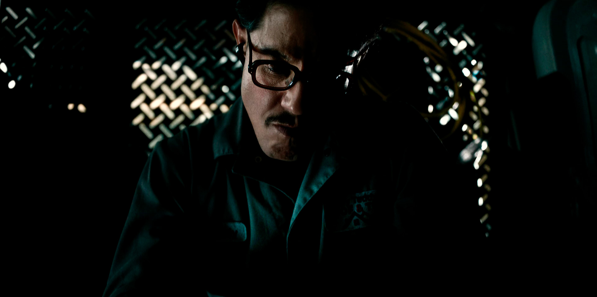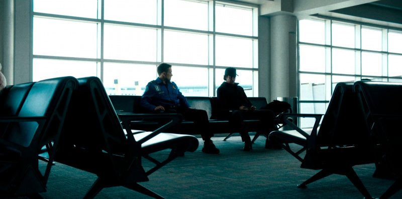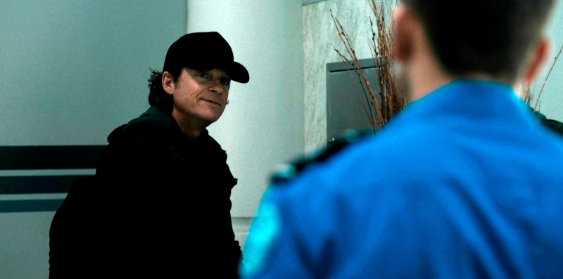 Ну и еще тут хорош Тео Росси в роли подручного главгада. Росси, правда, взяли сразу на две ставки: он и хакер-расхакер, который подключается ко всем камерам аэропорта, и по совместительству - снайпер. И отдадим должное мастерству хакера: он не забывает снять очки с толстыми линзами перед тем как взять в руки винтовку с оптическим прицелом.