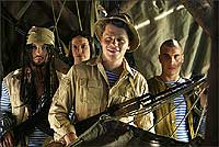 Схема пародий явно копировалась с "Очень страшного кино": побольше гротеска и побольше пошлятины - зрителям это нравится. Я не знаю, как другим зрителям, а мне пародии в основном не понравились. За исключением очень удачной находки в виде бригады тюнингованных машин "Ока" и эффектного сержанта, сыгранного Дмитрием Нагиевым, вспомнить, в общем-то, нечего.