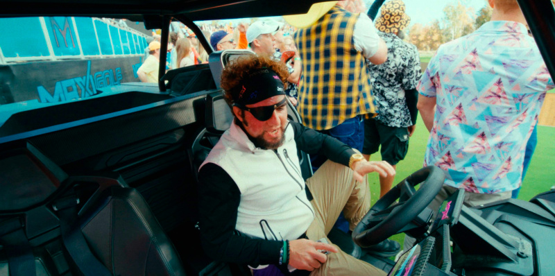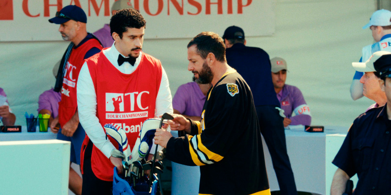В роли кадди - мальчика, таскающего сумку с клюшками (на эту должность Хэппи подряжает официанта ресторана при клубе Оскара Мехиаса) выступил Бэд Банни, он же Бенито Антонио Мартинес Окасьо - это пуэрториканский исполнитель латинского трэпа и реггетона, он один из 100 самых влиятельных музыкантов мира. Я его раньше видел в фильме "Быстрее пули", где он был очень забавный, ну и здесь его персонаж получился вполне прикольный.