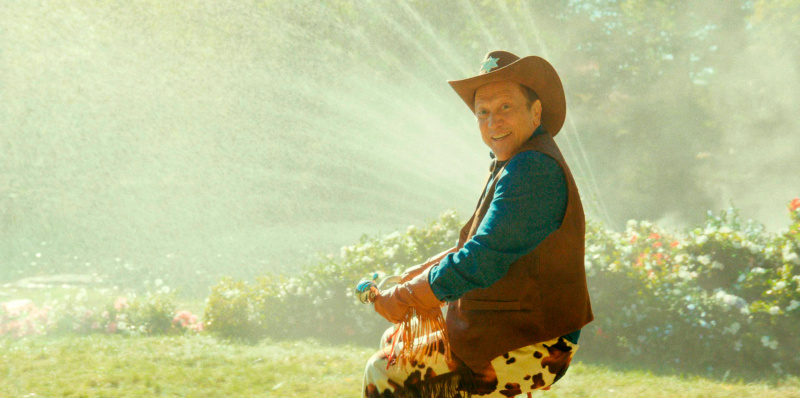 Бен Стиллер играет старого заклятого врага Хэппи Хэла Л., который тут теперь стал руководителем клуба не очень анонимных алкоголиков, и он этих алкоголиков использует в своих самых что ни на есть эксплуатационно-бытовых целях. Вот Стиллер тут комикует по полной программе, но, видимо, оно так и было задумано.