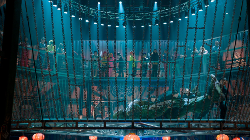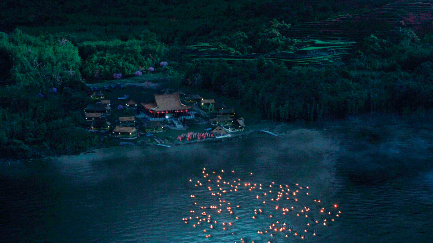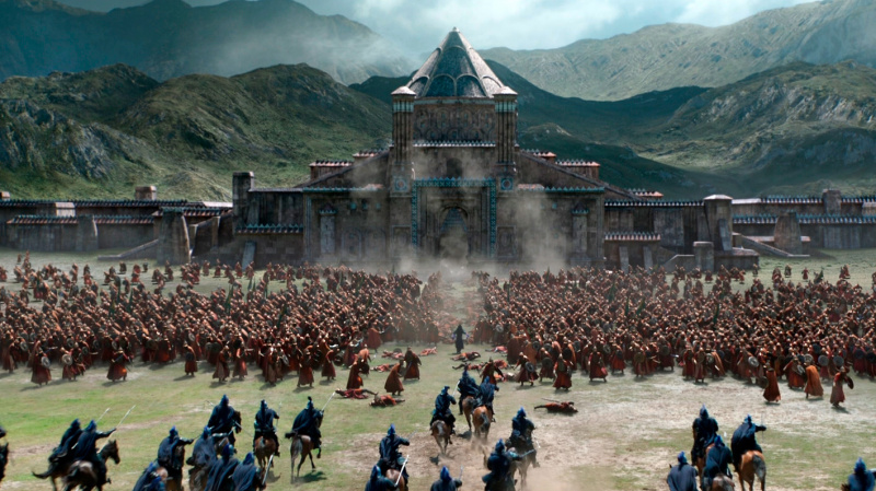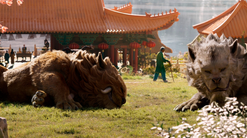 Водная карта, показывающая вход в деревню, сама деревня с ее великолепно созданными уникальными животными - это было реально классно сделано. Также отметим главную зверушку фильма - Хуньдуня, с которым подружился персонаж Бена Кингсли. Хуньдунь - это мифологическое китайское существо, из которого вообще произошла Вселенная, здесь имеет вид эдакой жопы с крыльями, но, впрочем, действительно обаятельной жопы с крыльями.